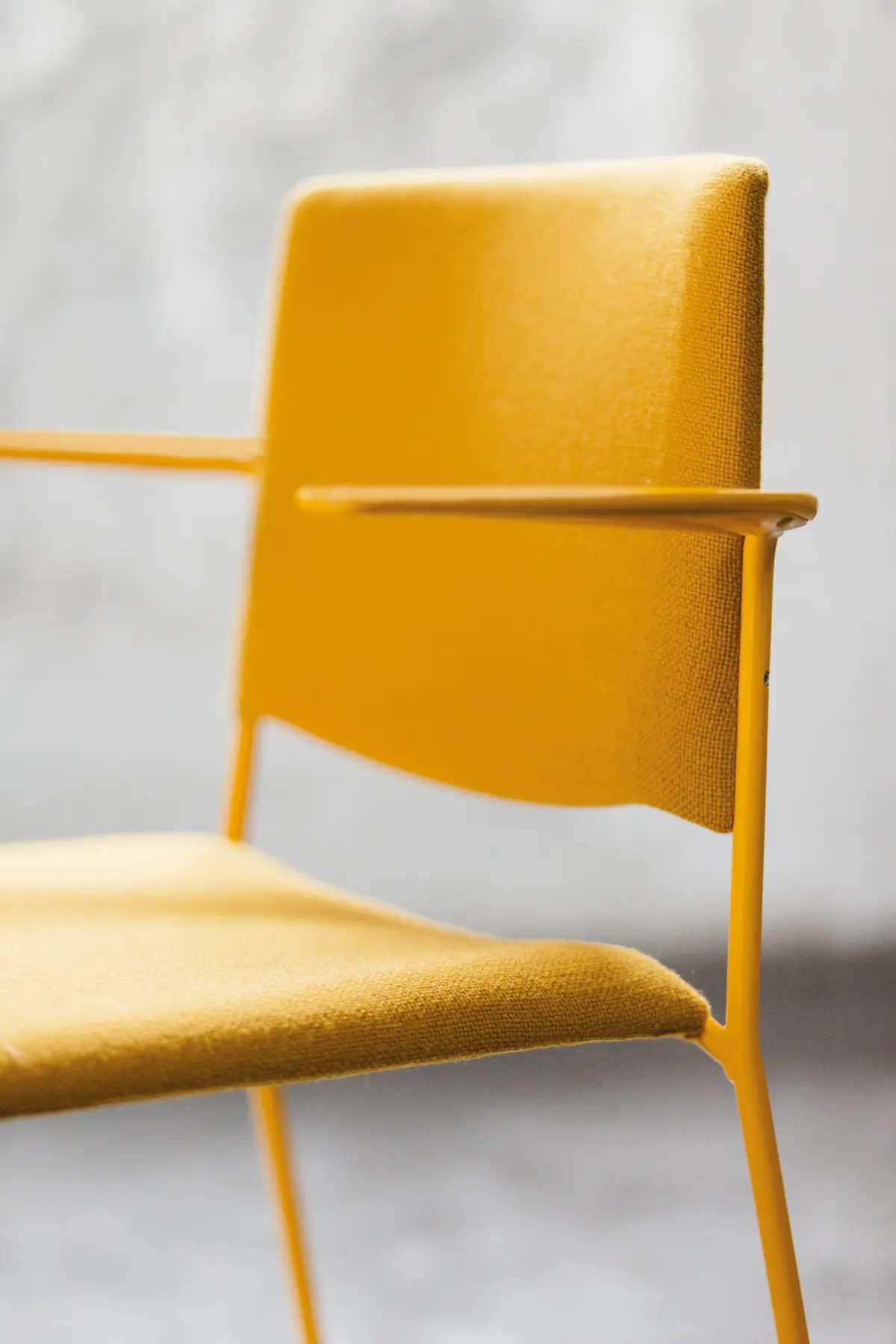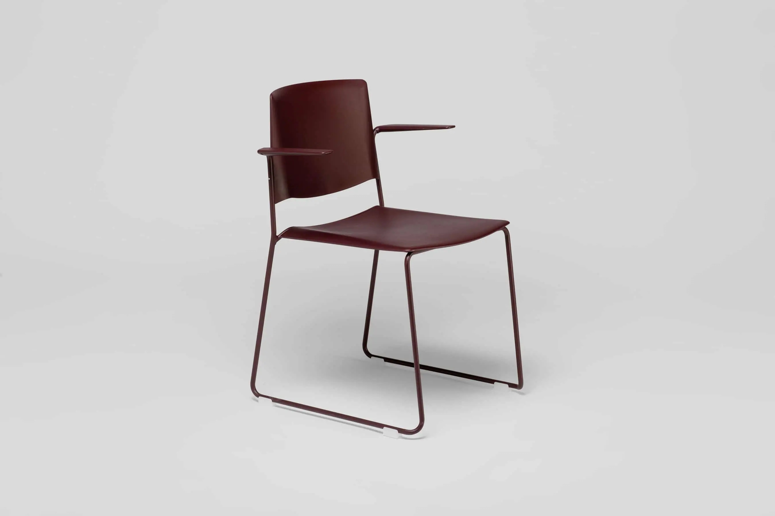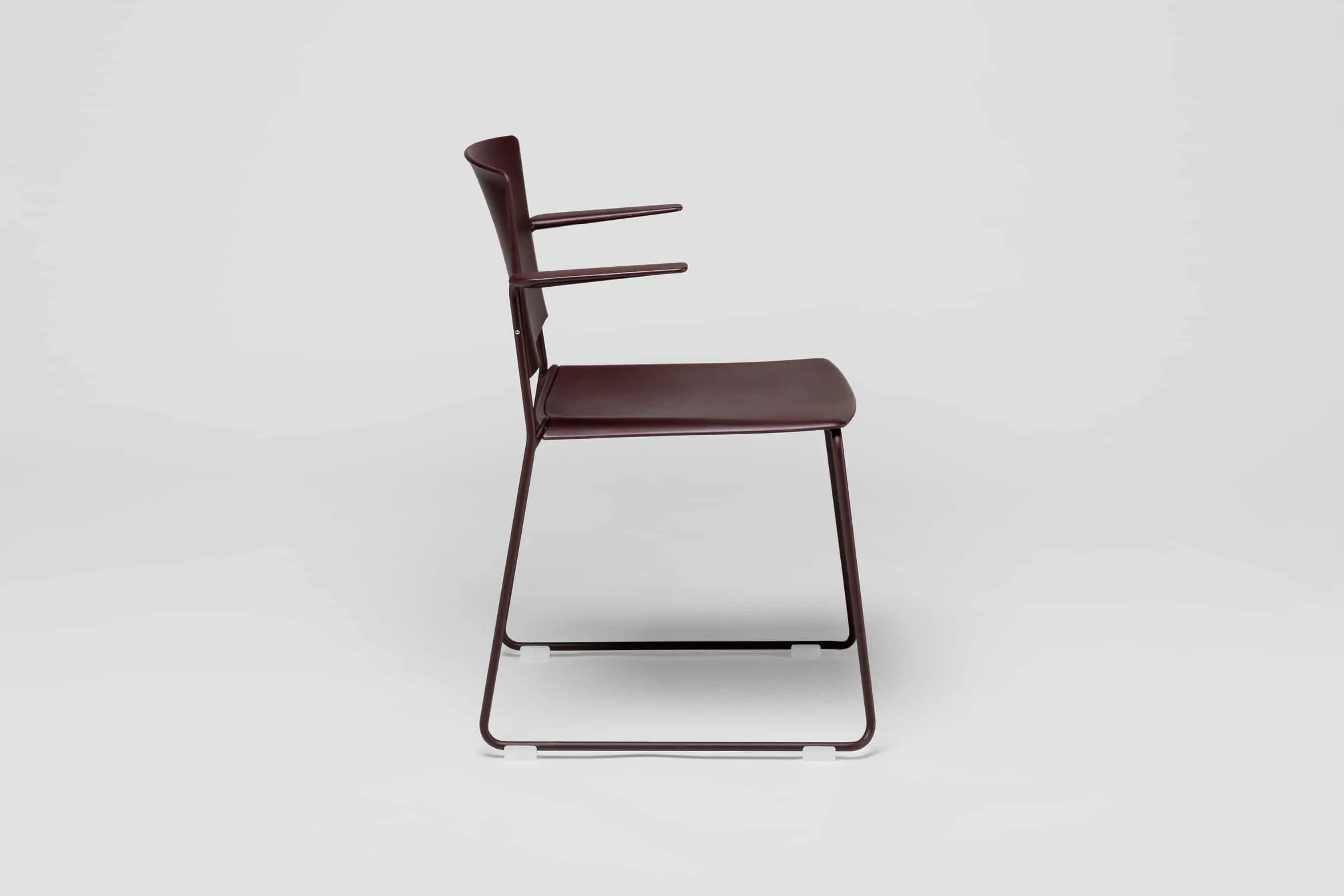 Ema chair with open backrest and arms is strong and lightweight and that allows to stack up to 45 units, which makes it perfect for all kind of spaces, in special for contract sector. The sledge steel structure and the aluminium arms can be chromed/polished or lacquered in any of our colours and the seat and backrest are available in polypropylene or upholstered. Besides, it has an upholstered seat pad available, which is very useful for multipurpose or crowded spaces, improving stacking by causing less friction than the full upholstery version. In this case, the stackability reaches up to 20 units on the trolley and 15 units on the floor.