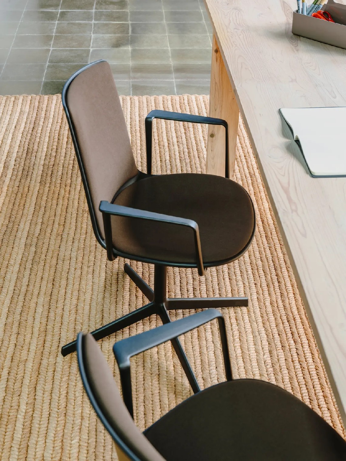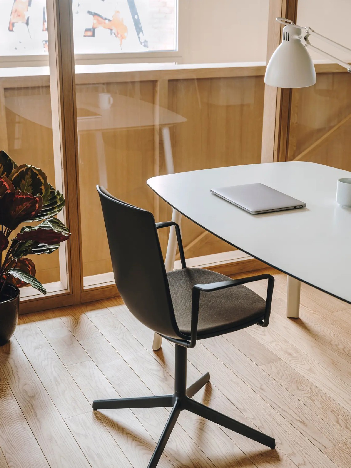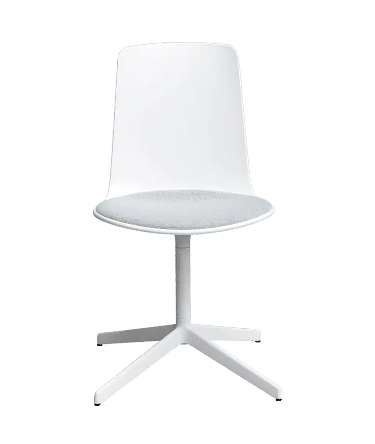 Lottus High confident chair has a 4-star swivel or fixed aluminium base that comes in polish or lacquer option in any of our colours and has a broad range of finishes available: polypropylene shell with or without polypropylene or upholstered seat pad, or fully upholstered one. Furthermore, it is possible to add aluminium or natural or stained oak wooden arms.