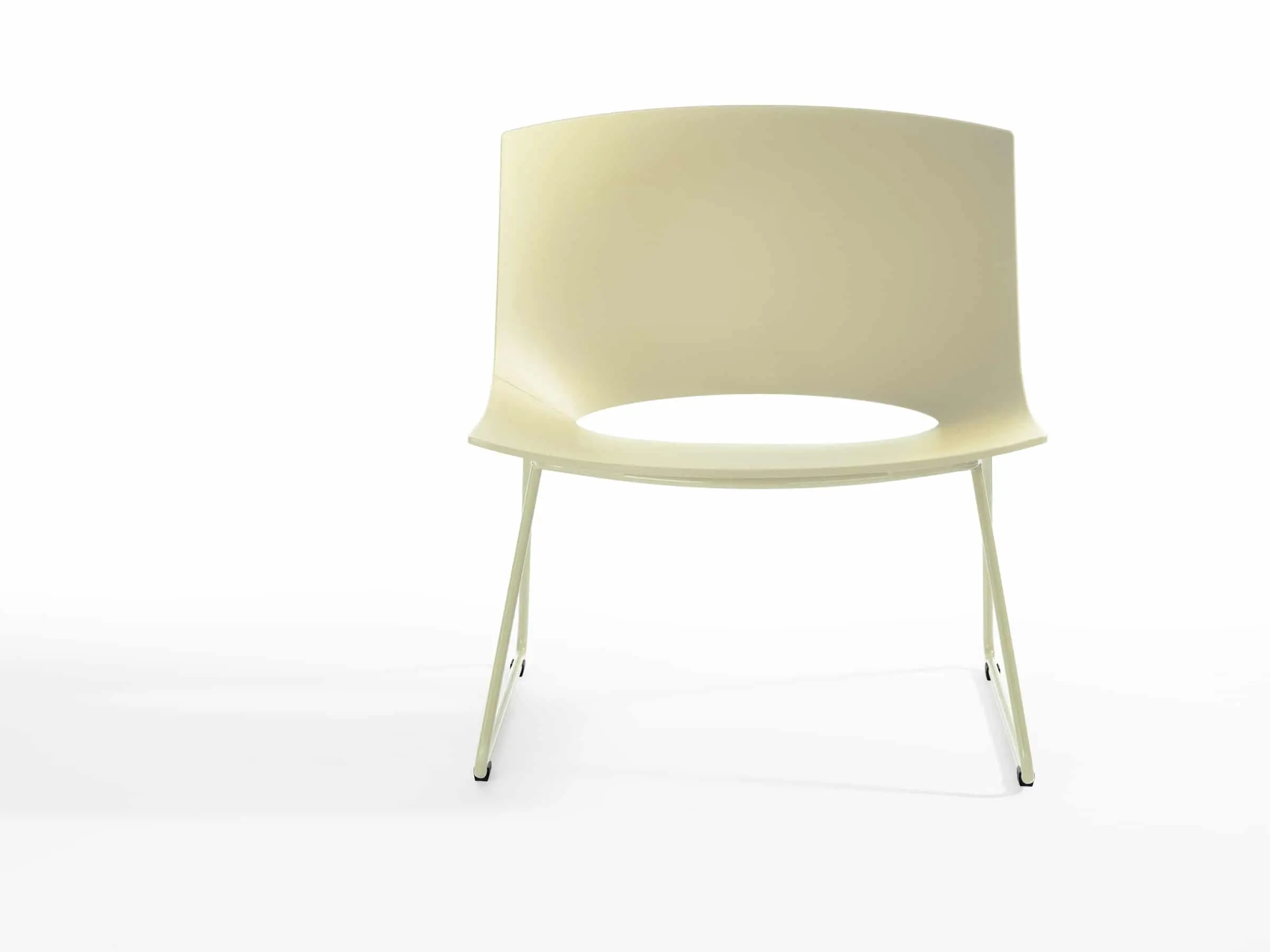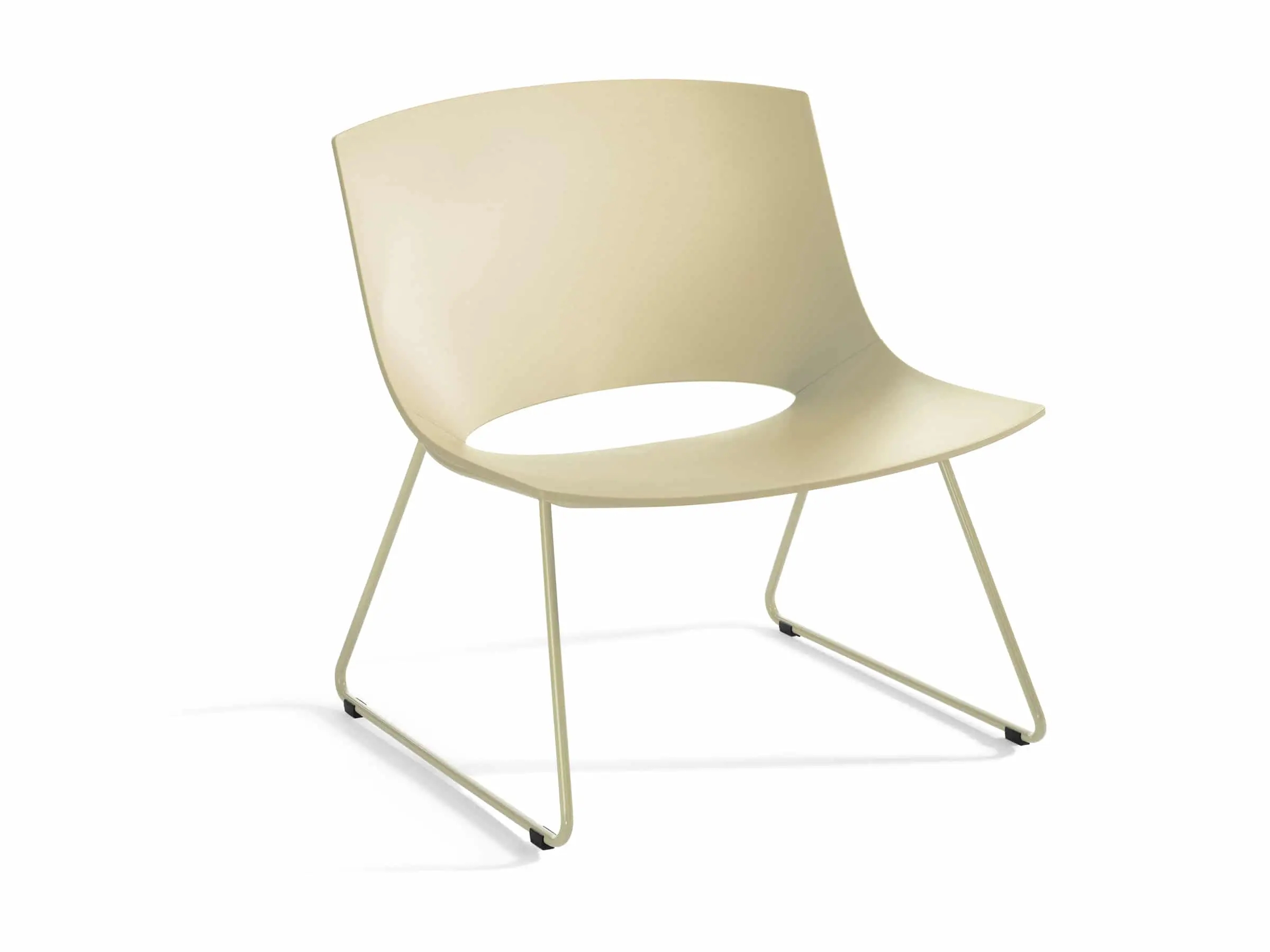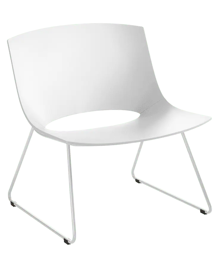 This Oh! lounge has a sledge steel structure and it comes in chrome or lacquer option in any of our colours. The base is combined with a polypropylene shell that can have interior upholstery in any of our many fabrics.