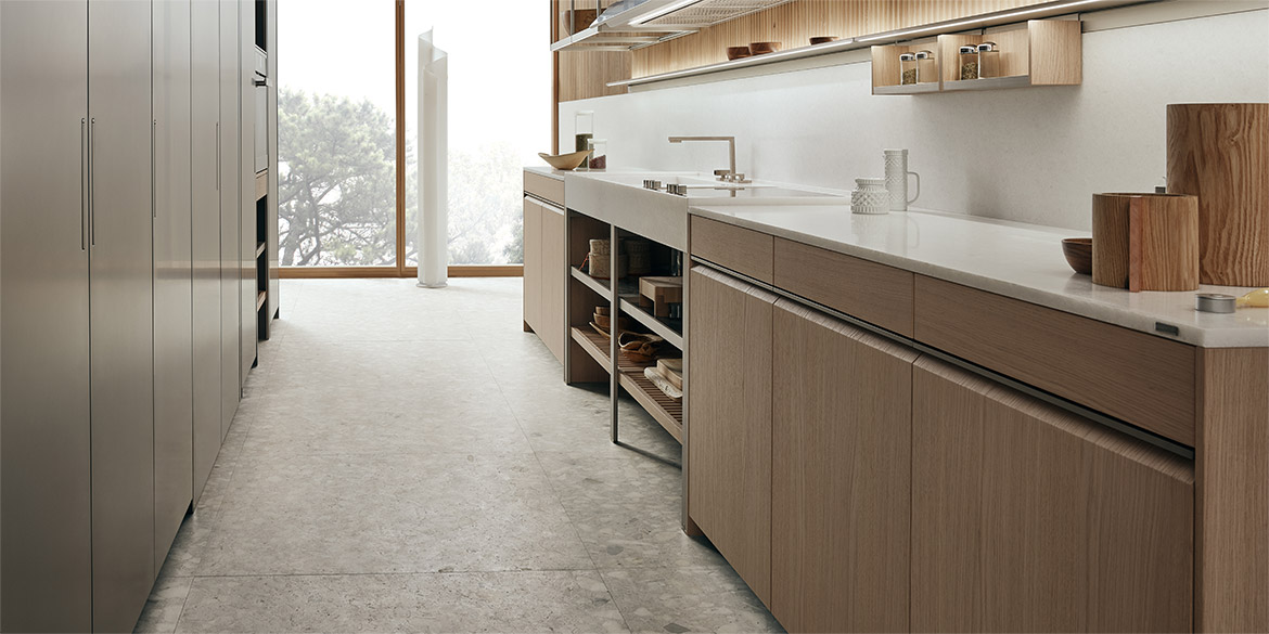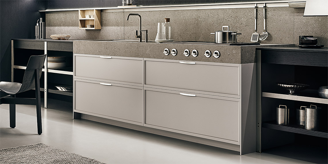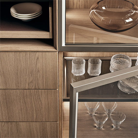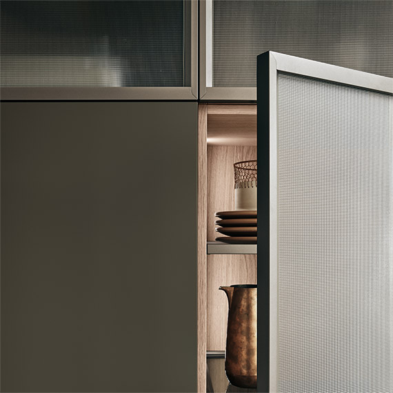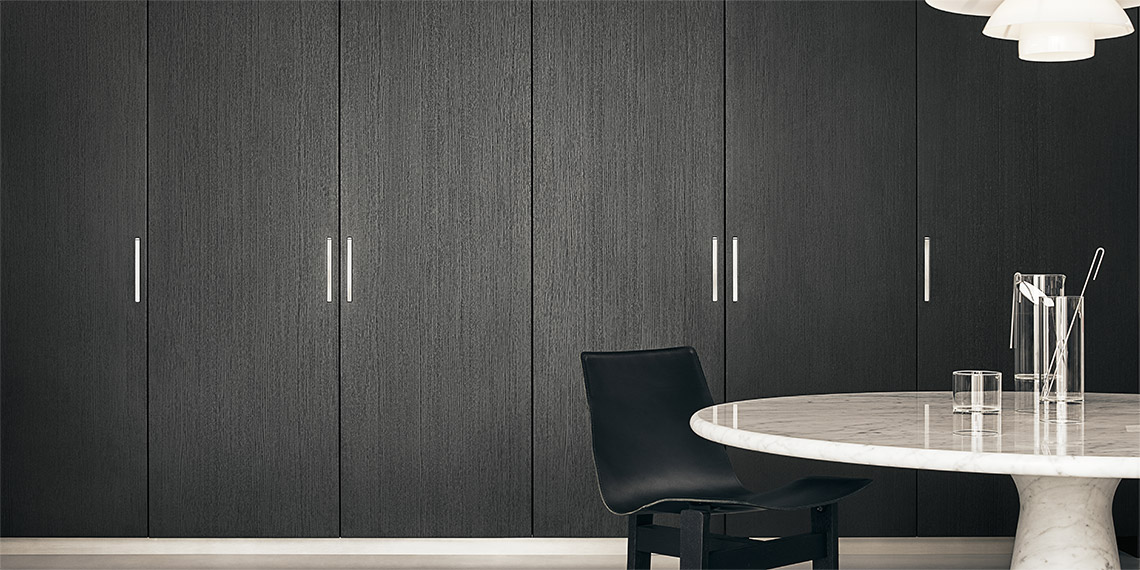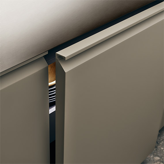 采用 Nexus 手柄的光面門(厚度為 28 毫米) 適用于地柜、高柜和壁柜。采用玳瑁手柄的地柜和高柜框架門(厚度為 28 毫米) 適用于壁柜、成型底部或推拉開口。采用鋁材和玻璃材質(zhì)的框架門(厚度為 28 毫米) 適用于壁柜、餐具柜和玻璃面展柜系統(tǒng)。采用嵌桿式手柄的光面門(厚度為 28 毫米) 適用于高柜和餐具柜