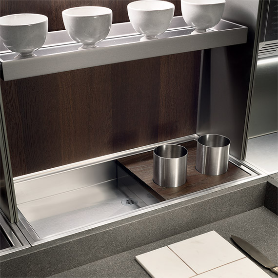 Medley 可以安裝擱板、碗碟可以安裝管道收集盤子、玻璃杯和餐具排水器中的水,甚至還有外排式排風(fēng)罩等爐灶電器。