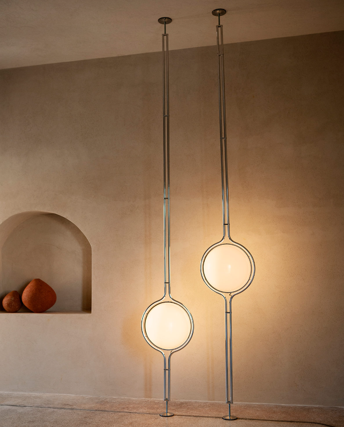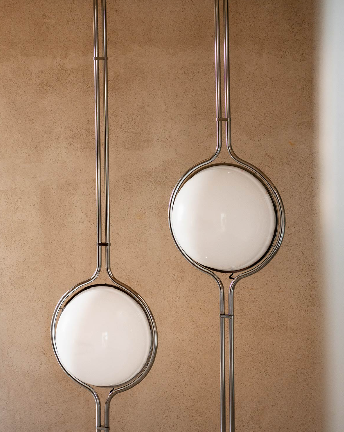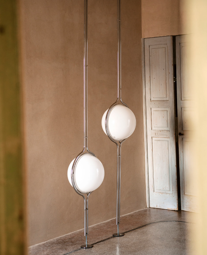 A luminous sphere seems almost suspended in time and space. A metal structure seduces the gaze with its striking simplicity and the boldness of its construction. The extroverted Dana by Jean-Pierre Garrault and Henri Delord fits perfectly into the constant search for timeless pieces carried out by Tacchini: a lamp with a strong personality. Born from free creative thought and full of the artistry of the 70s, rediscovered by Tacchini to leave an unmistakable mark in any room. Dana’s idea was born in 1970 during a trip to Japan, when the designers decided to climb Mount Fujiyama and one evening, during a stop in a traditional Japanese inn, they were lucky enough to see the full moon rise and pass over the top of the mountain: hence the intuition to create a lamp with large luminous spheres that seem to rise towards the sky.