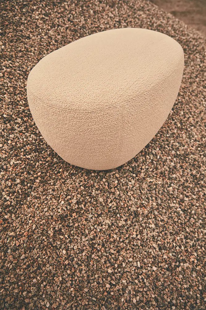 Reminiscent of sunny summer afternoons and the slow passing of time. Afternoons is an outdoor lounge set featuring an armchair, sofa, bench and oval coffee table with a choice of top in Pietra Lavica Smaltata, Pietra Bianco or Grigio Pece. Supported by an outdoor painted aluminium frame upholstered with natural-coloured, hand-woven PVC, the chair collection is padded with cushions in quick-drying polyurethane foam that fit perfectly into the silhouette. The collection is completed by a pouffe with Polimex and polyurethane frame and upholstered with a water-repellent cloth.