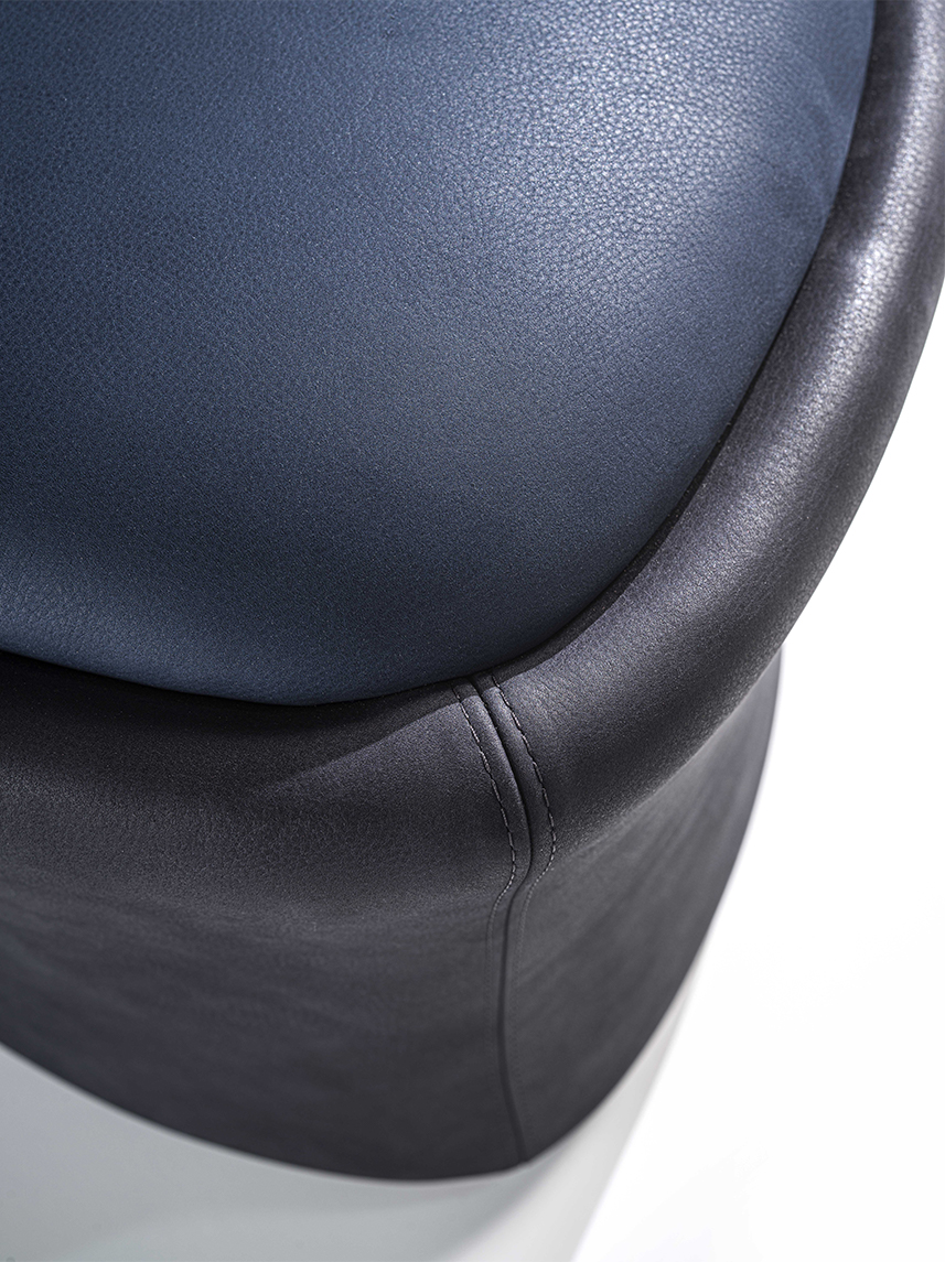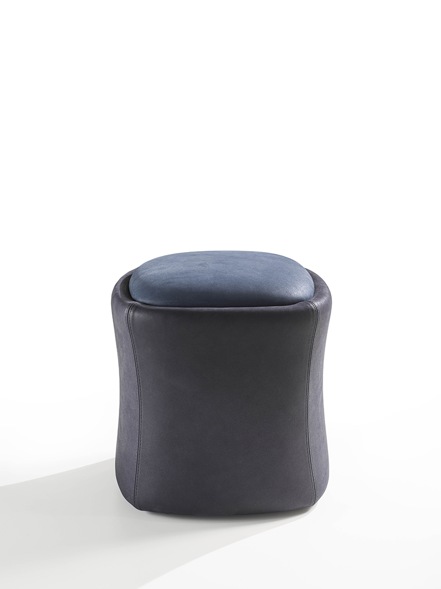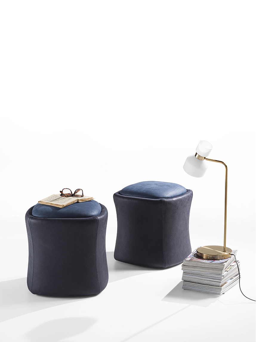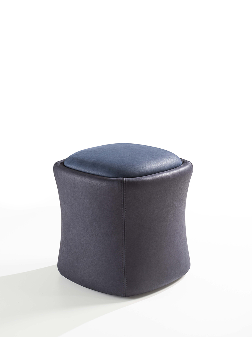 Pouf with soft shapes characterized by elegant leather with detailed seams, capable of integrating with any type of environment