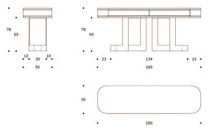 Dimensioni: larghezza 180 cm, altezza 80 cm, profondità 50 cm