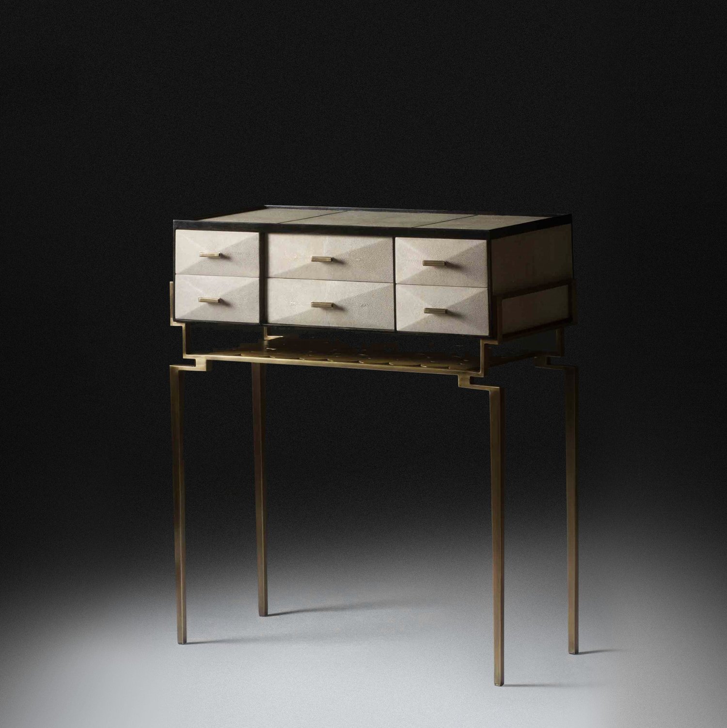 The Cosima 7 Console, is both practical and stunning in design. This smaller console includes geometric drawers that can used to store anything from jewelry to stationary.