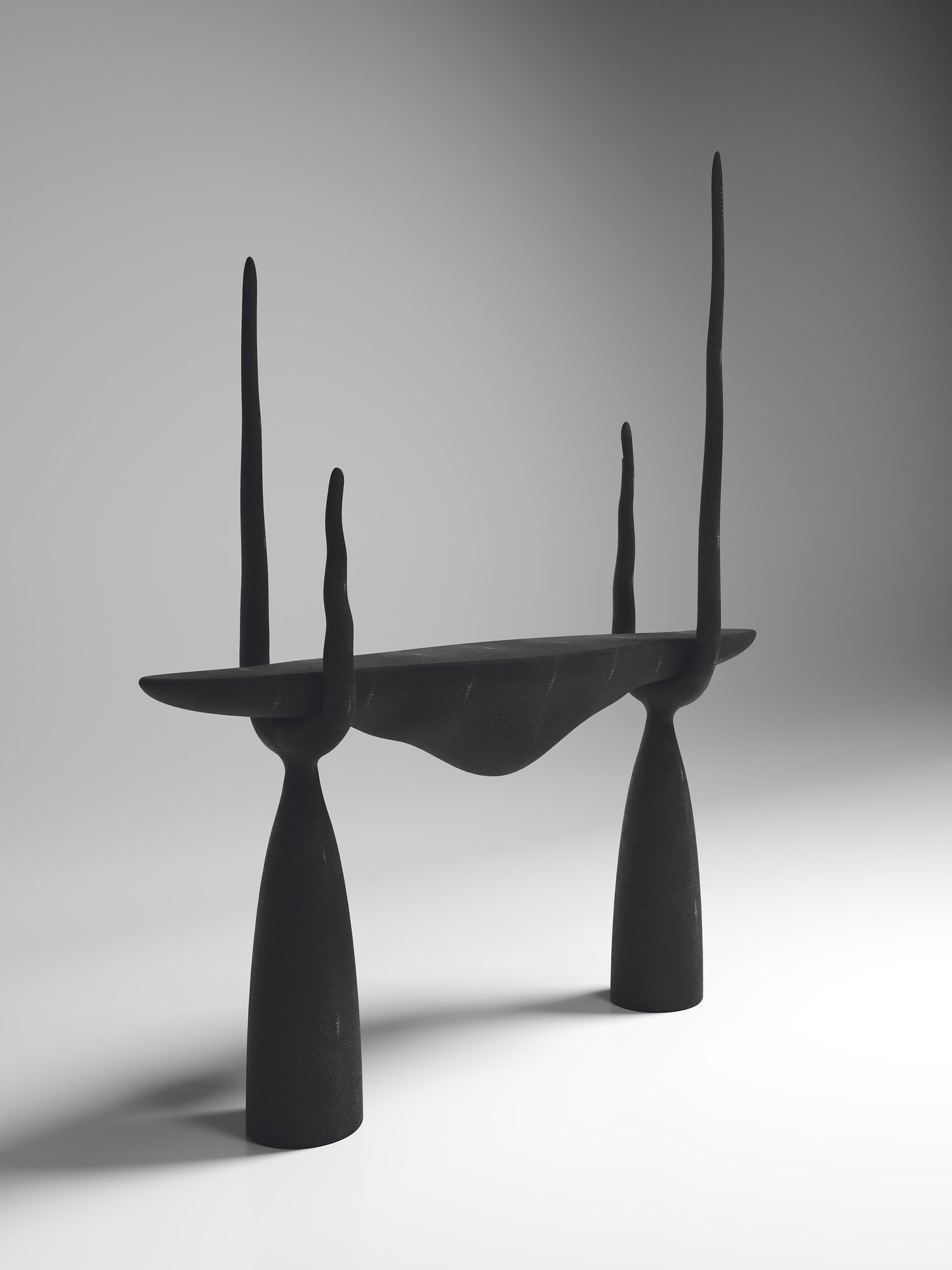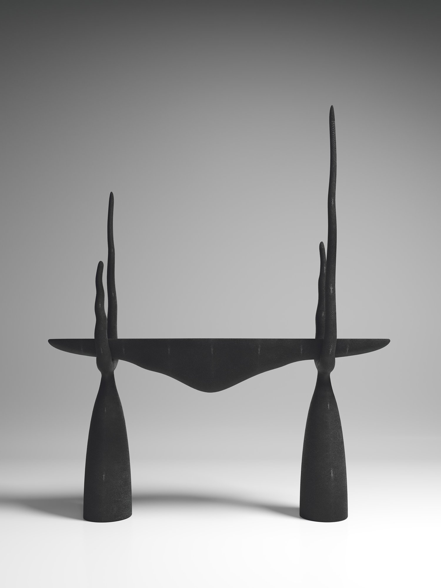 The Sylvie Console is an ethereal and sculptural piece. This table is inspired by the iconic Sylvie Chair by R&Y Augousti; one of our very first designs, paired together to create a majestic and stunning statement in any space. This piece is shown in black shagreen but custom color or sizing are available on request. Other versions can be seen at end of image slide.