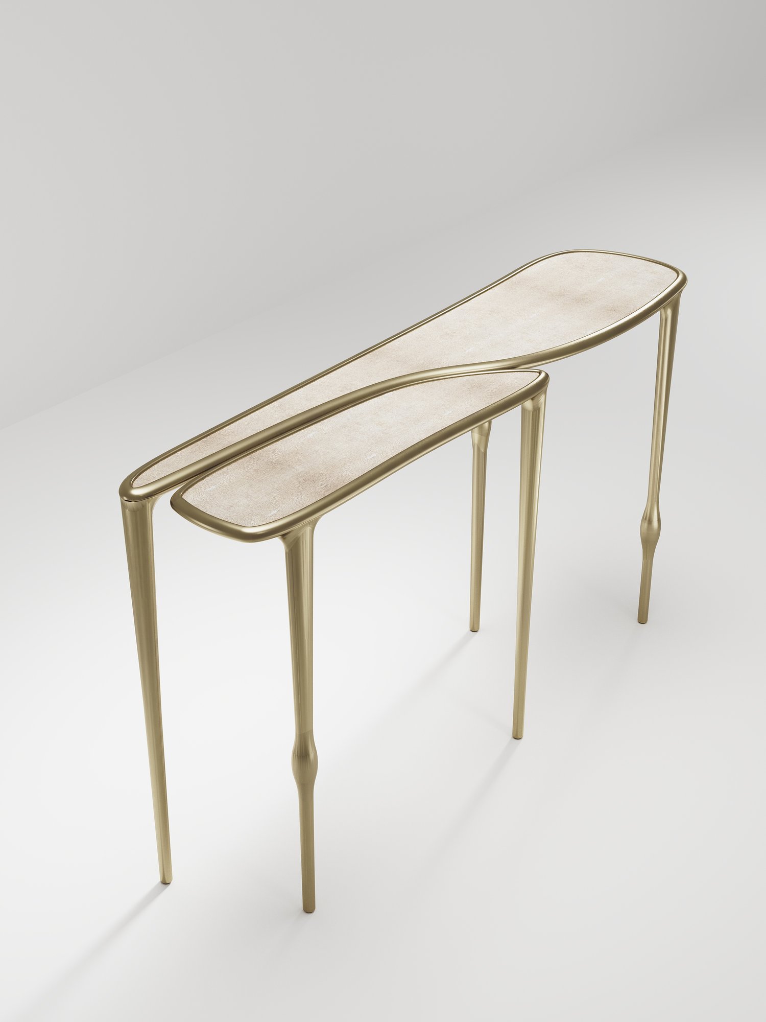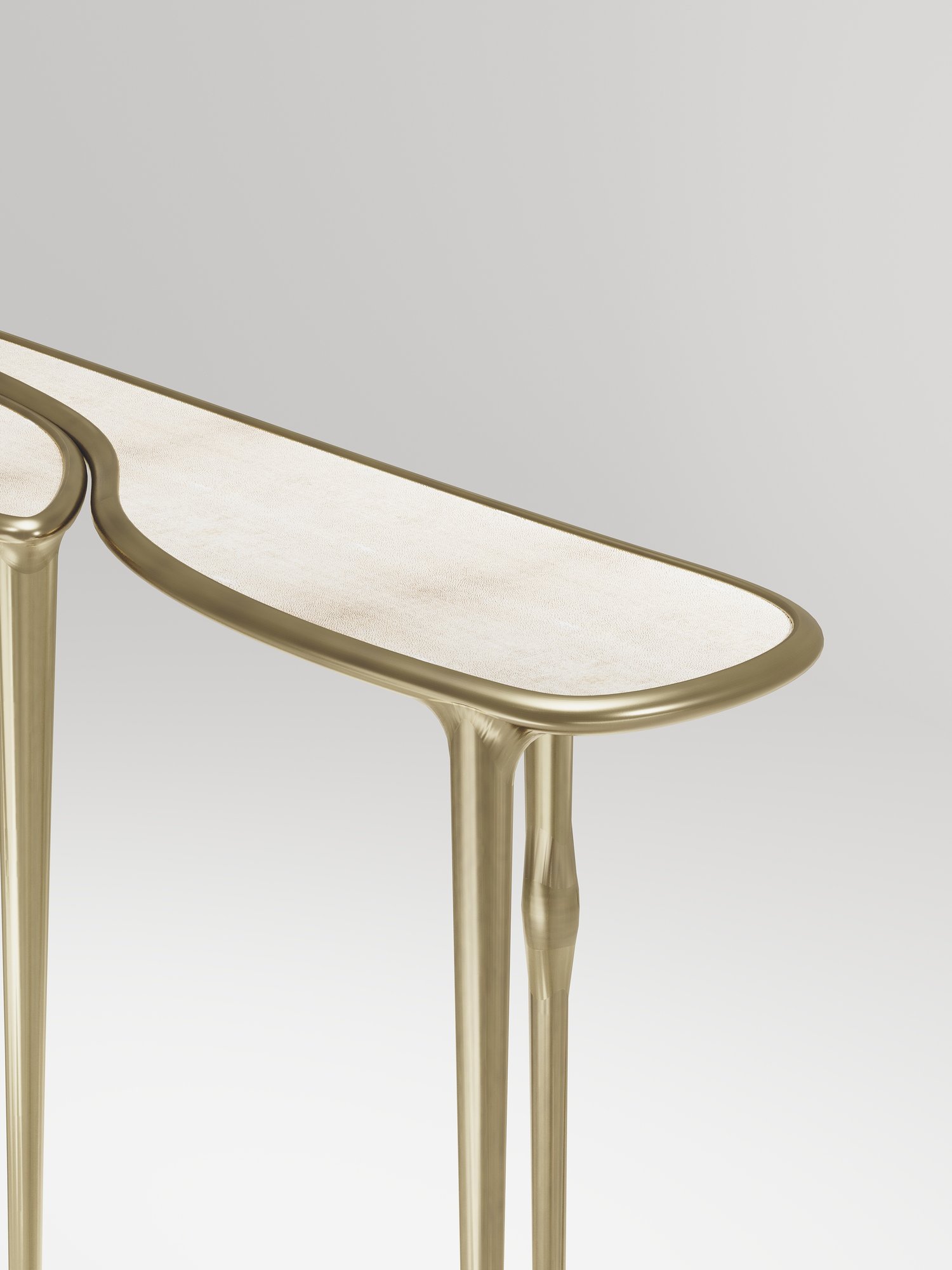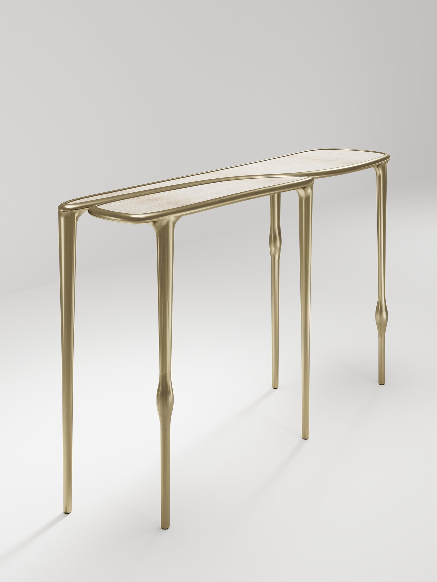 The Frequency console table by R & Y Augousti is sleek piece with a vintage-modern feel. The piece explores fluid organic lines with subtle detailing to create the signature Augousti aesthetic.