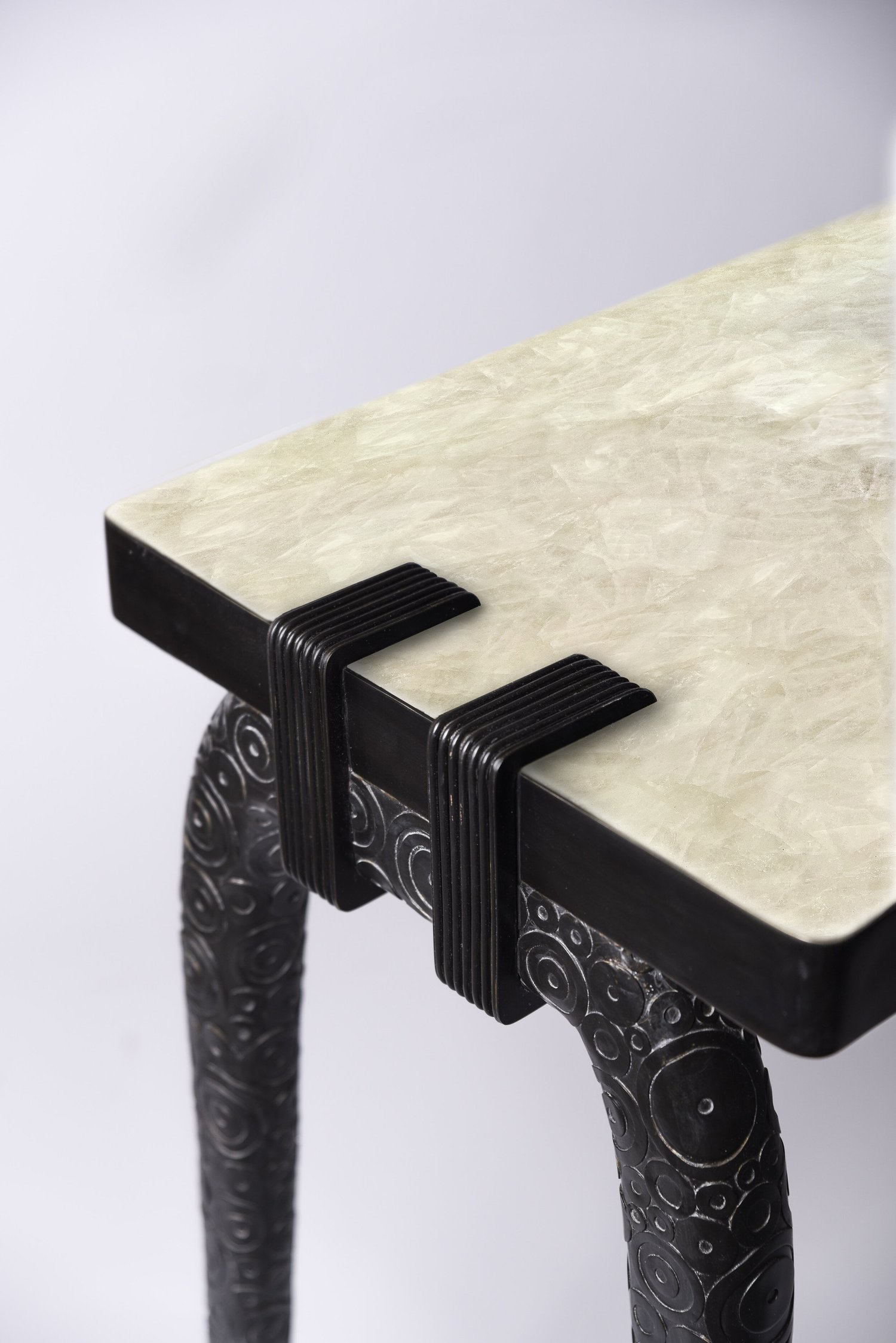 The iconic console is the perfect statement piece for any room. The circle inlay work on the legs makes this piece unique even more incredible.
