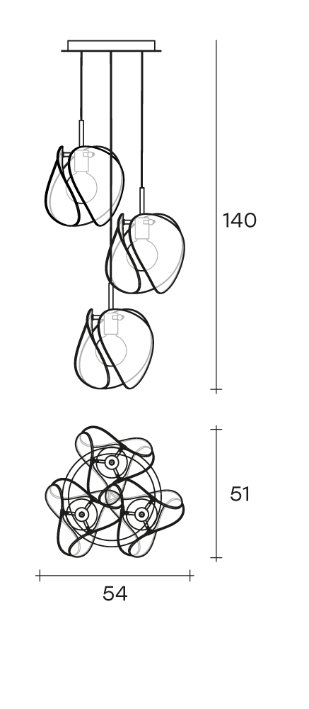 Diffusore decorativo composto da tre elementi in vetro fumè o bronzo da 6mm fuso a gran fuoco.