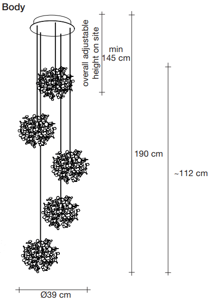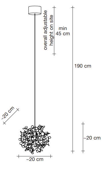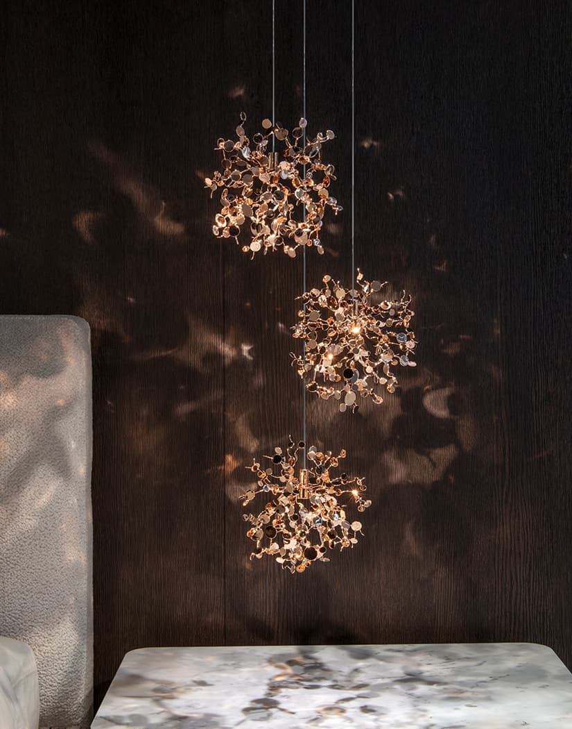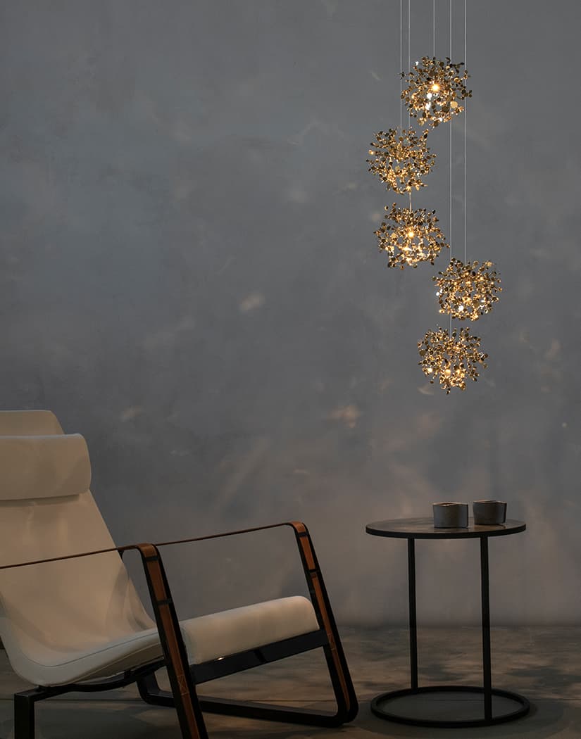 Terzani design team can work with you to develop a bespoke Argent, mon bijou design that fits your project including these options: wire length, finish, cluster design.