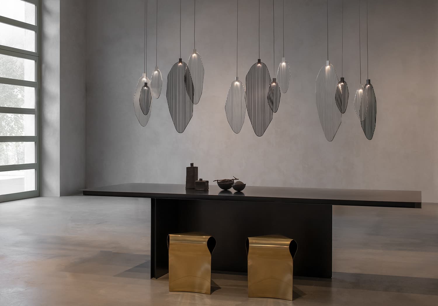 Terzani design team can work with you to develop a bespoke Harpe design that fits your project including these options: wire length, finish, cluster design, size and shape.
