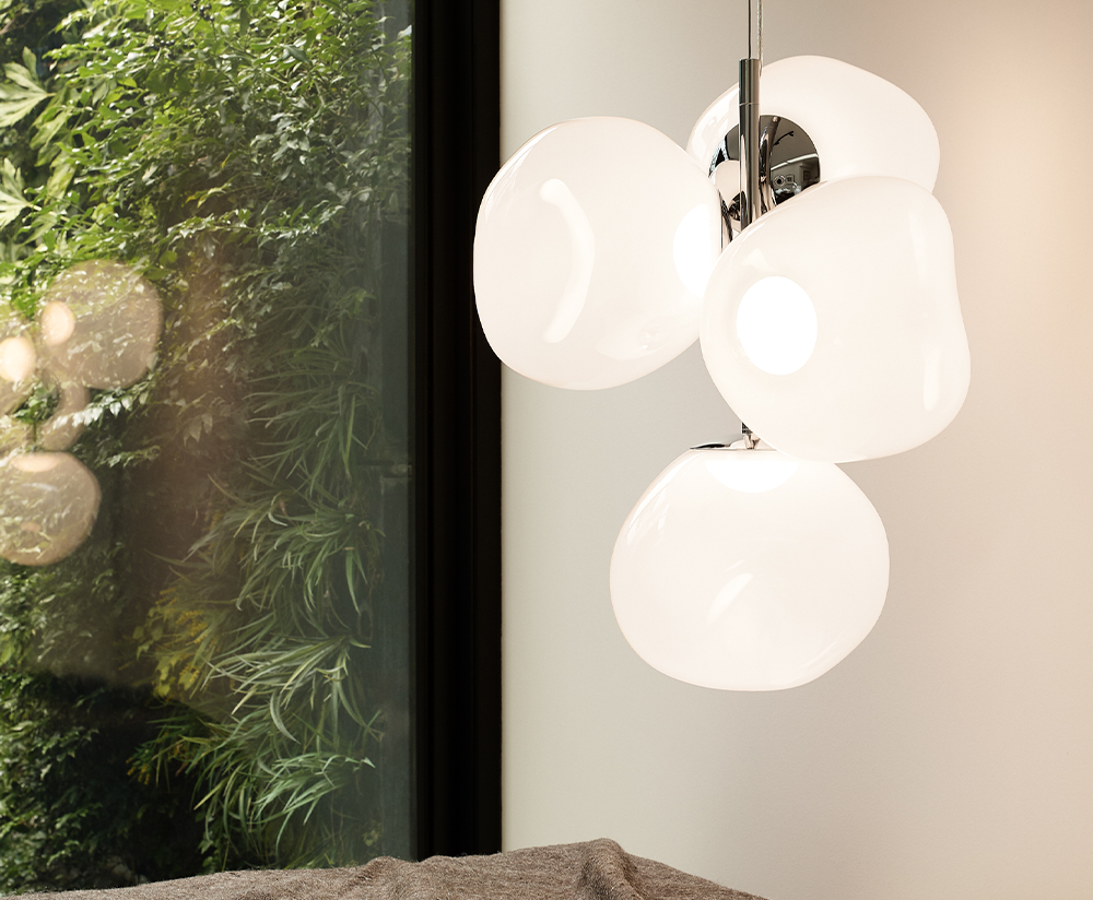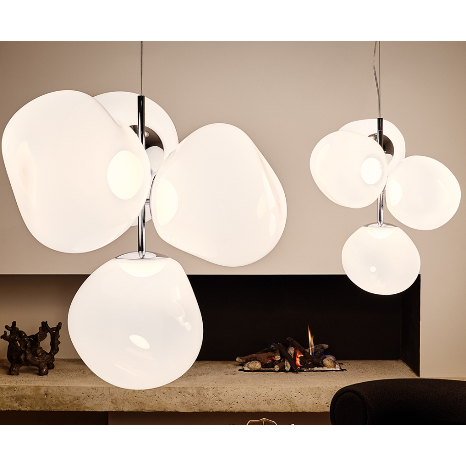 Obsessed with the idea of creating an imperfect, organic and naturalistic lighting object, Melt was created in collaboration with FRONT – a Swedish design collective. Melt is evocative of molten glass, the interior of a melting glacier, or images of deep space.