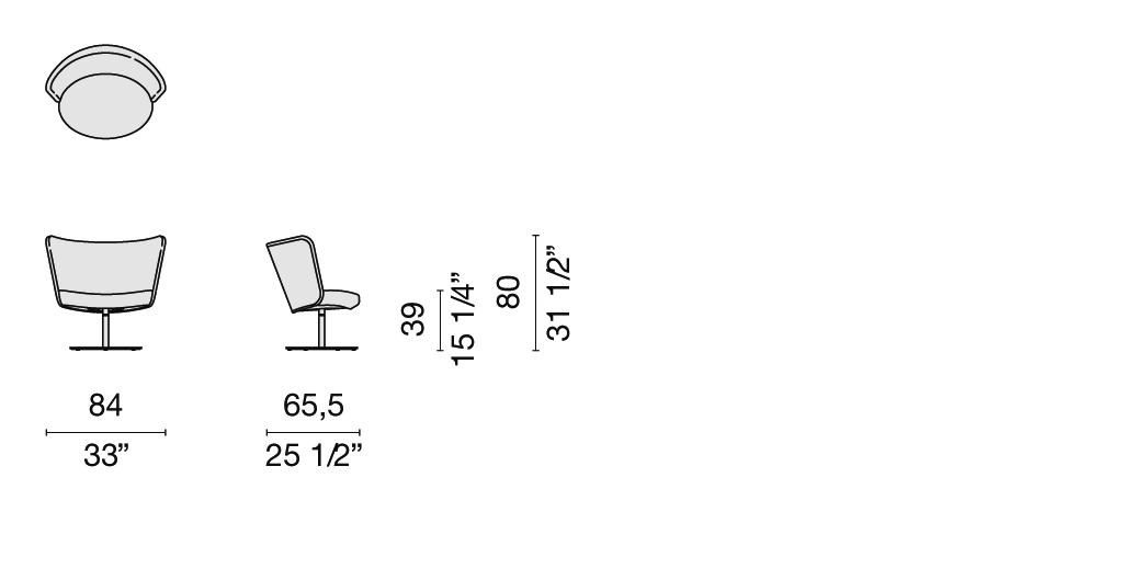 Extremely comfortable, this chair has a soft, semicircular wrap-around backrest placed above a curved and swivelling base; matte varnished in white, mud or anthracite.
