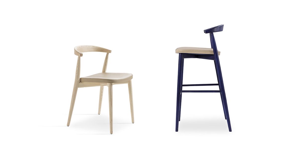Both the stool and Newood Light chair can now be embellished with the addition of a removable seat cushion, made of padded plastic upholstered with the fabrics and leathers in the collection.