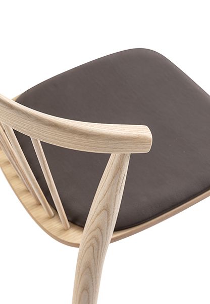 The seat can be in beech plywood seat, ash veneered in the same colour of the structure, or padded with fixed cover in a selection of fabrics or leathers of the collection.