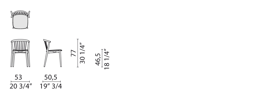 The result of a contemporary re-interpretation of the timeless charm of Windsor-style chairs: Newood chairs are available in a range that includes the Newood Stool.