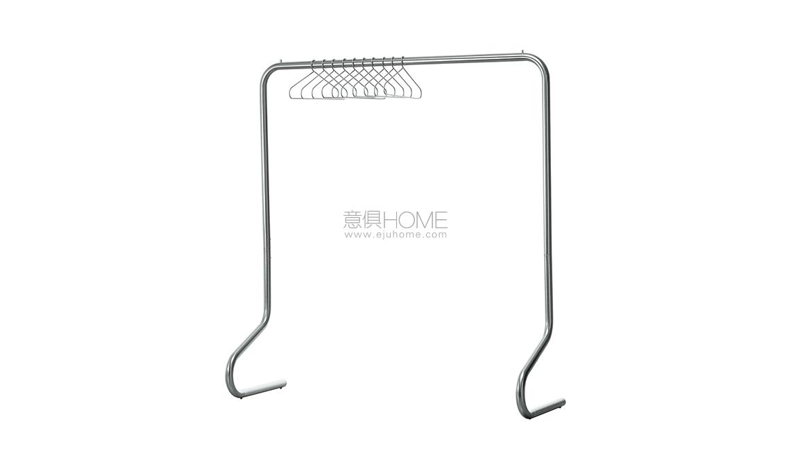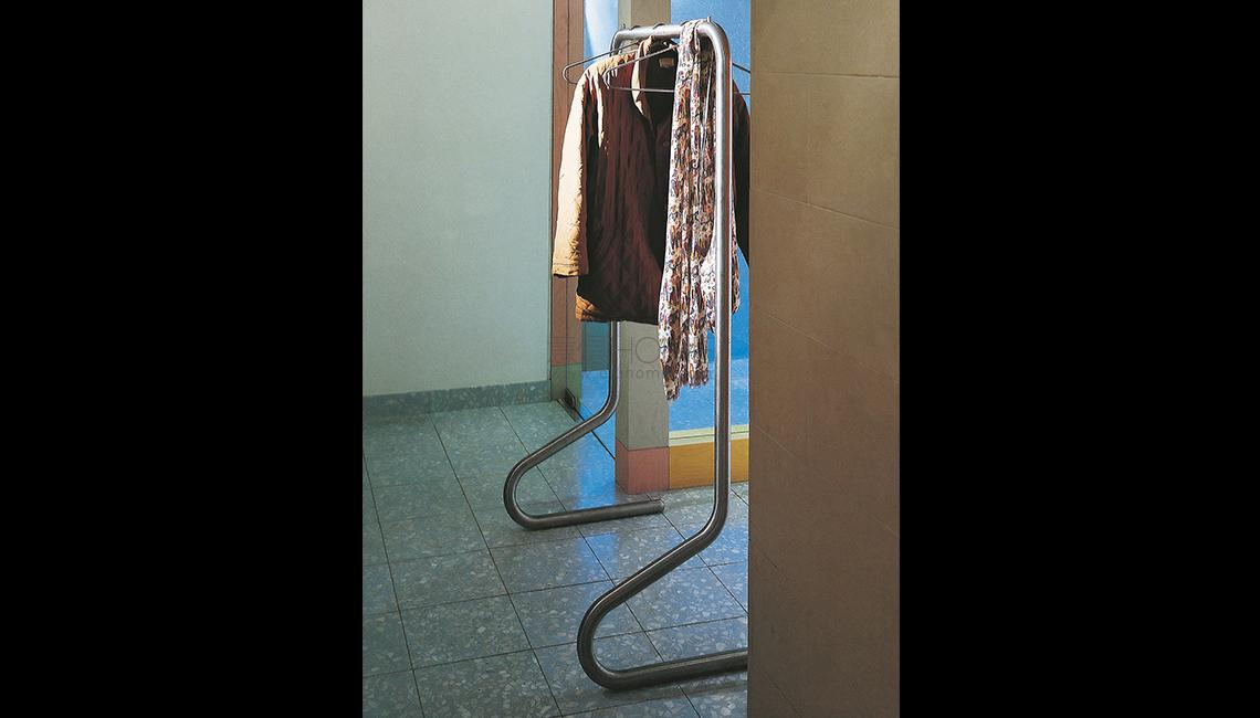 Sophisticated and essential, the Hangman clothing rack by Marc Newson is made of satined stainless steel and comes in two different sizes.