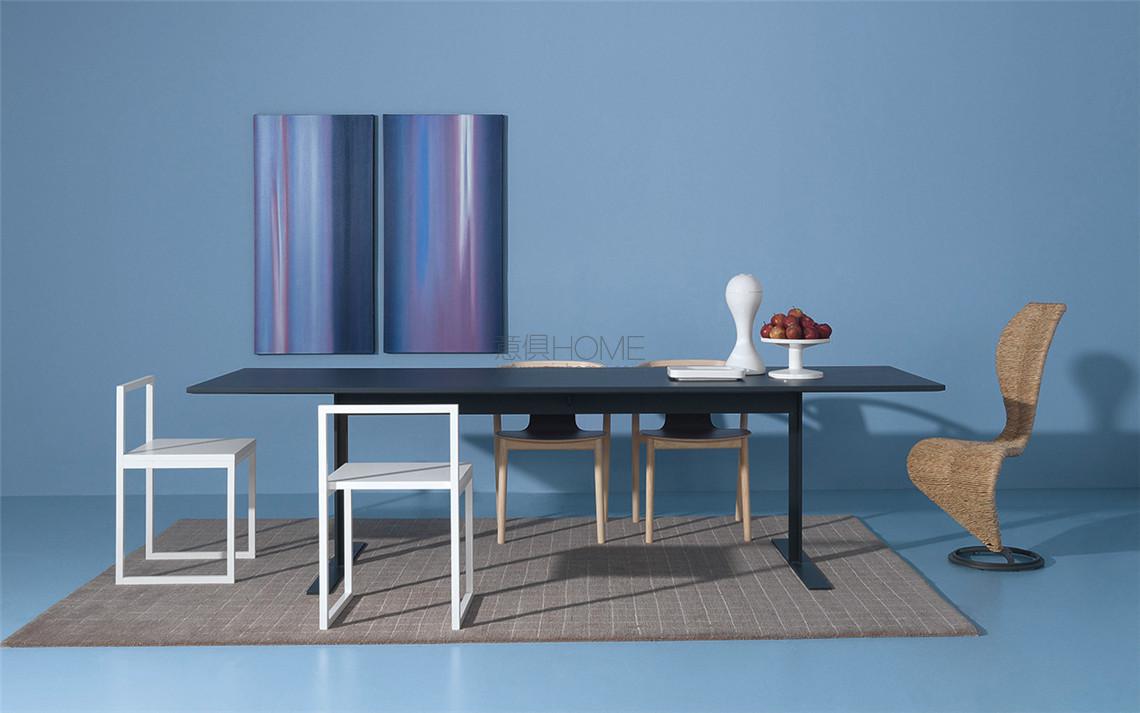 Ideal for both private dining areas and office spaces, the Luxor table by Giulio Cappellini is available in two sizes. The top is made of medium-density lacquered wood fibre with a matte or shiny finish; the metal base is finished with matte-finish lacquer in the same hue as the table top.