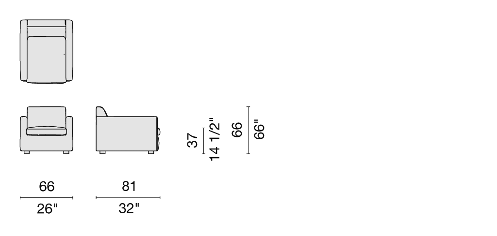 The removable cover of this armchair is available in the fabrics from the collection, whereas the cover is fixed when made of leather.