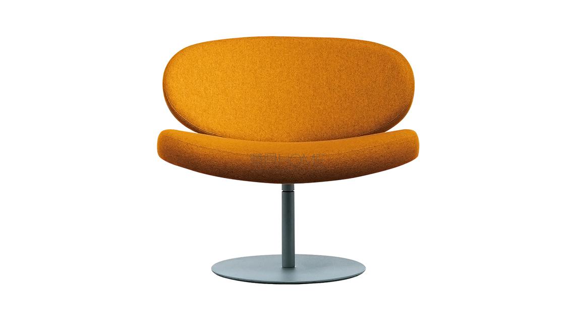 The Sunset armchair by Christophe Pillet has a swivelling design and backrest and seat made of curved beech wood; the base is made of satined stainless steel and is also available with a matte lacquered finish in white, mud or anthracite.