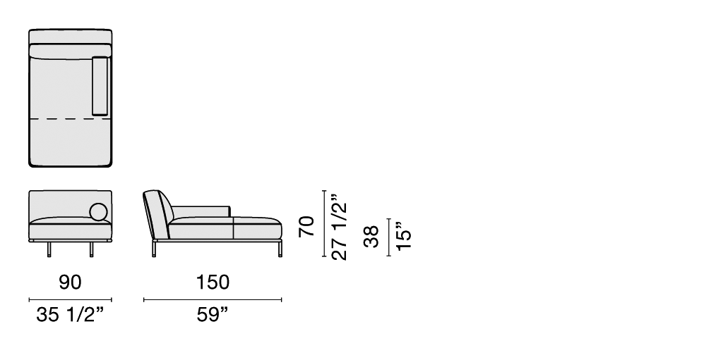 The elegance of the sofas is emphasized by the arm rests, trimmed with double stitching and gros-grain and equipped with concealed zippers. The loose pillows, with detachable covers in leather and fabric, give the collection a hint of relaxed informality which is also reflected in the slender tubular metal structure, studied to make the seats appear extremely light.