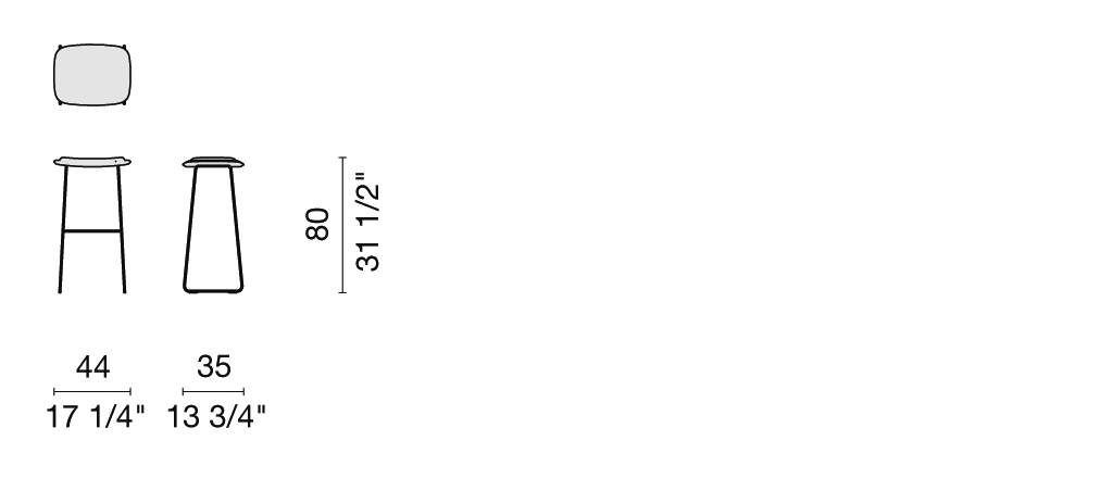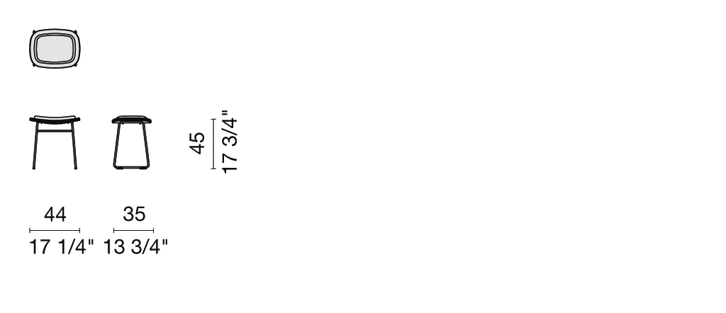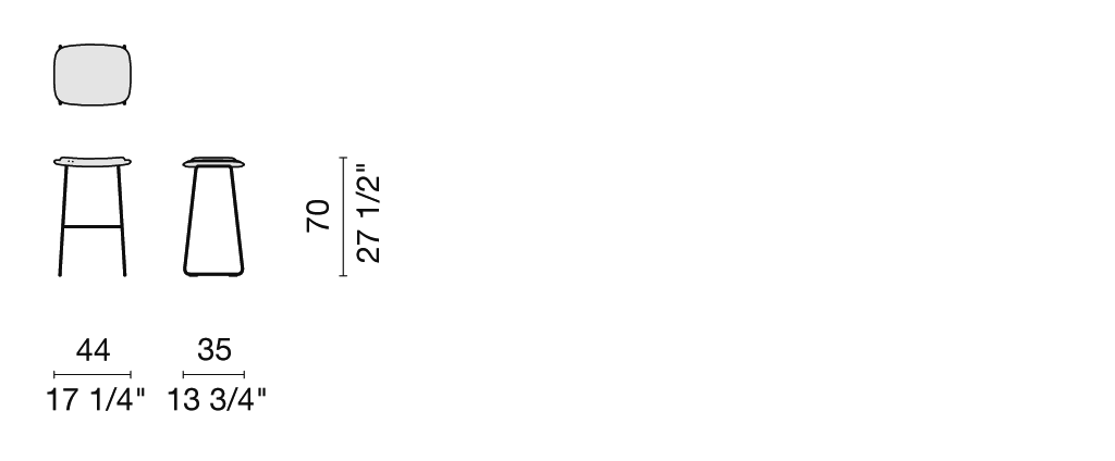 The structure of these seats is made of beech plywood, with a fixed cover in the fabrics and leathers from the collection. The base is built of stainless steel with a satined or matte varnished finish in white, mud or anthracite.