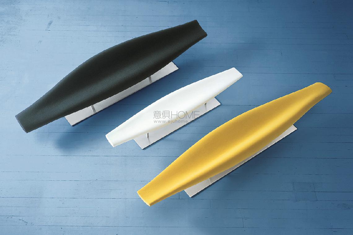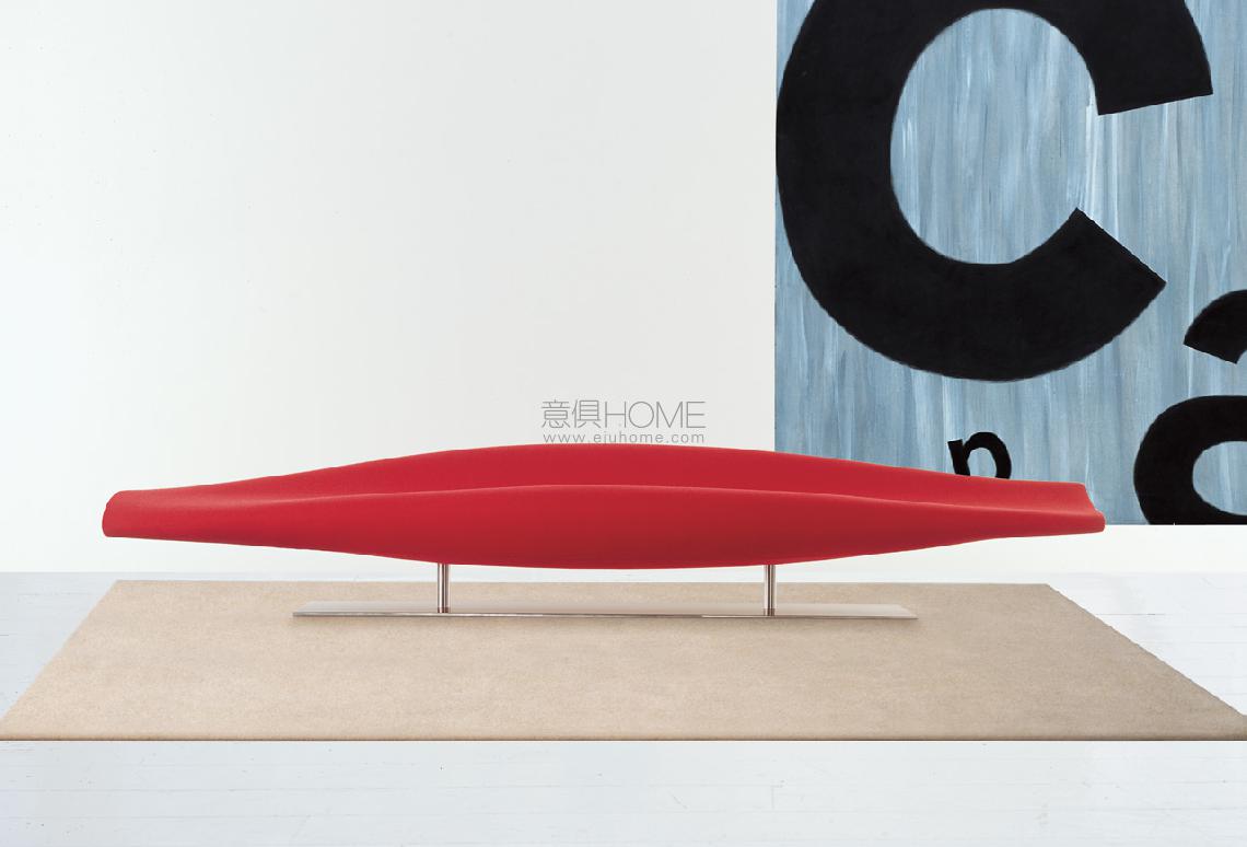 Inout by Jean-Marie Massaud includes benches and sofas available in two versions: lacquered fiberglass with a polished finish seat in orange, red, blue, white, black; seat with moulded polyurethane foam padding and fixed cover in the colours and leathers in the collection. For both versions, the base is made of satined stainless steel.