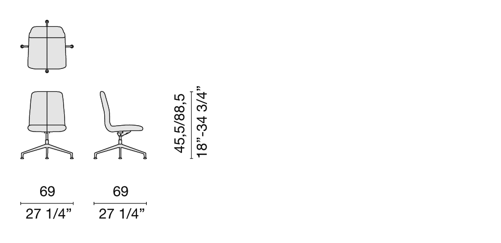 The Lotus Comfort armchair collection, designed by Jasper Morrison, is composed of low and medium-height seats, with or without armrests, with four or 5 spokes, with or without wheels, and adjustable in height and tilt.