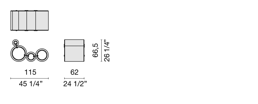 Created in 1969, the seat is based upon a completely de-structured design: In fact, it is composed of four hollow cylinders made with a rotational moulding process to obtain interchangeable elements that can be assembled assembled at will and fastened together in a compact manner. From the backrest to the seat, each unit can be placed in multiple positions, giving life to an element of design that reflects one’s individual needs and tastes.