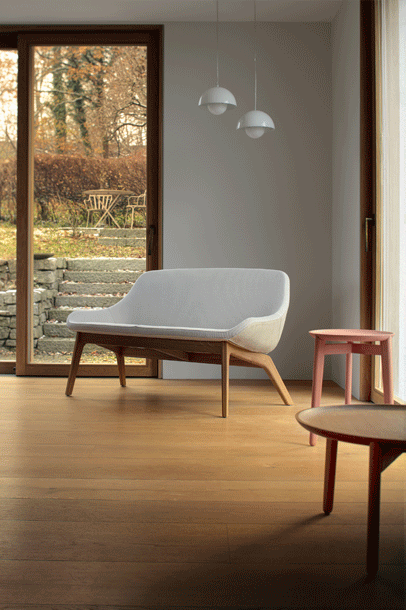 “Avec plaisir” – with pleasure – the name is the concept. The idea is that of an Oriental side table for serving tea or coffee. A low, three-legged solid wooden table support carries a removable tablet. The high, slim model supports a fine, removable wooden tray. The lower version carries a tray made of aluminum or a correspondingly large solid wood plate.