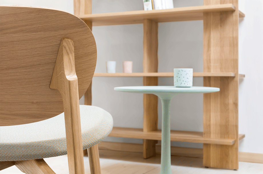 The archaic form of this table speaks for itself. It owes its unique identity to the feeling that it turns around its own axis. It is present in the room as a feature and fixed on its slim-line middle foot in solid wood. To all appearances, this round table has been carved from one piece of wood. Wherever you place it, TURNTABLE is always in the right place.
