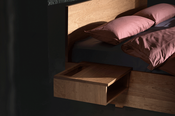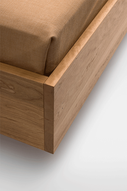 The purist design of the SIMPLE bed family puts the living material in the foreground. The lightness of the construction is enhanced by the floating frame.
