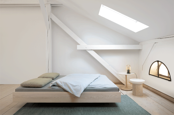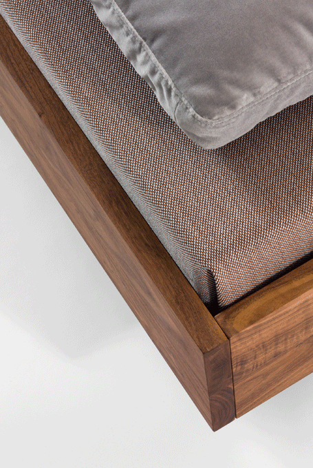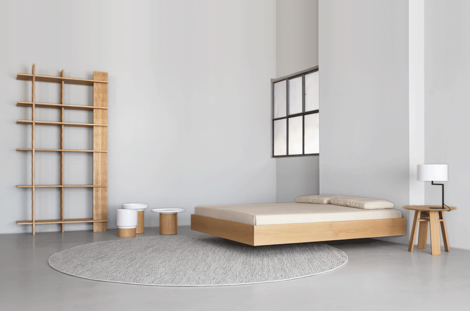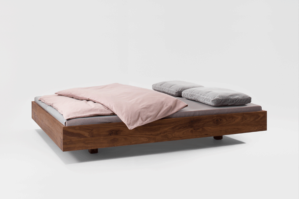 The puristic design of SIMPLE foregrounds the living material. The lightness of the construction is intensified by the floating frame. SIMPLE – the bed in the simplest form and function. The bedside tables DEPO, DOZY and WAITER & WAITRESS are the perfect accompaniments.