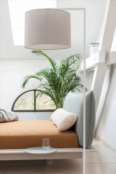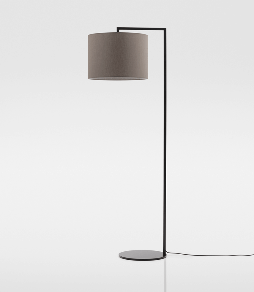 The desire for simplicity and the pleasure in pure design led to a geometrical abstraction of natural branch forms. The NOON range of lamps is rigidly constructed, the textile lampshades give a soft light. The matt black or matt white powder coated finish gives the iron a soft and warm appearance. The intrinsic value of the lamps is a product of material and hand-crafted details.