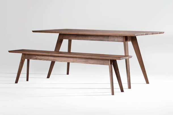 CENA BANK – the straight lined bench that makes you dream. The CENA BANK is available to match the successful CENA table family. As well as the table, the plate is bevelled, which gives the seat lightness. The four feet spread to the floor and provide high stability without compromising legroom. The solid wood bench is available in oak, colour stained oak and American walnut. In the length of 140 to 240 cm. In the length of 140 to 240 cm cantilever available without middle leg.