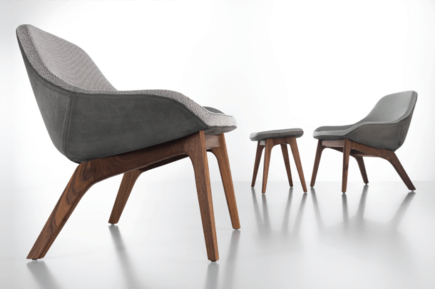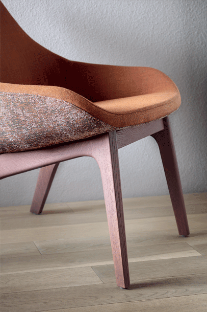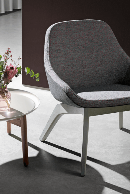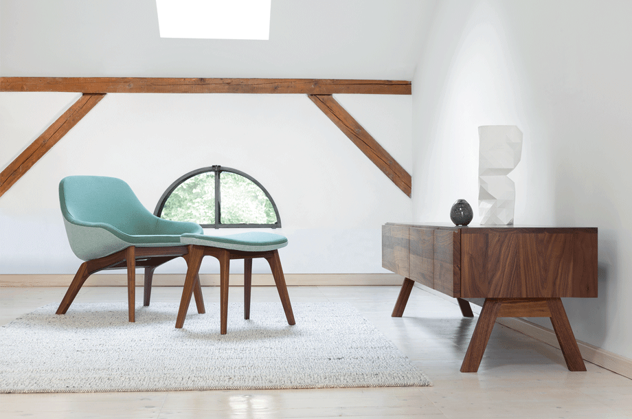 MORPH LOUNGE brings together an unusual combination of materials: The solid wood frame carries a comfortable upholstered shell. The positioning of the legs gives the chair a unique posture, as if it had a support and a free leg. The softly formed seat invites to take a seat. Due to its compact dimensions this straightforward chair exudes an air of lightness that requires only a small area. He feels at home in a wide diversity of spacial situations.