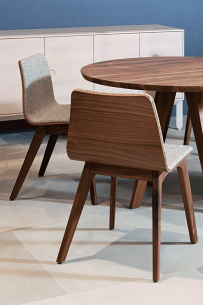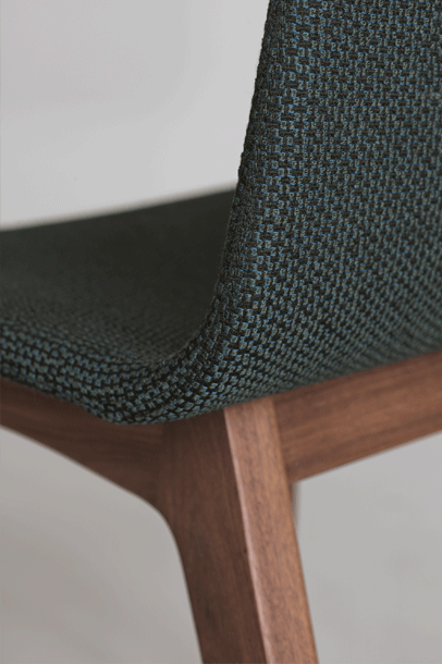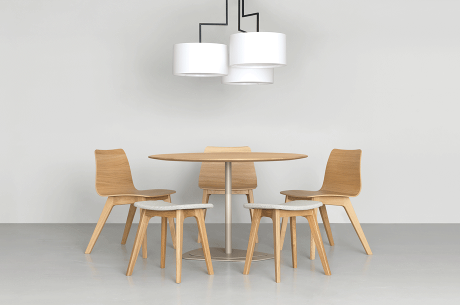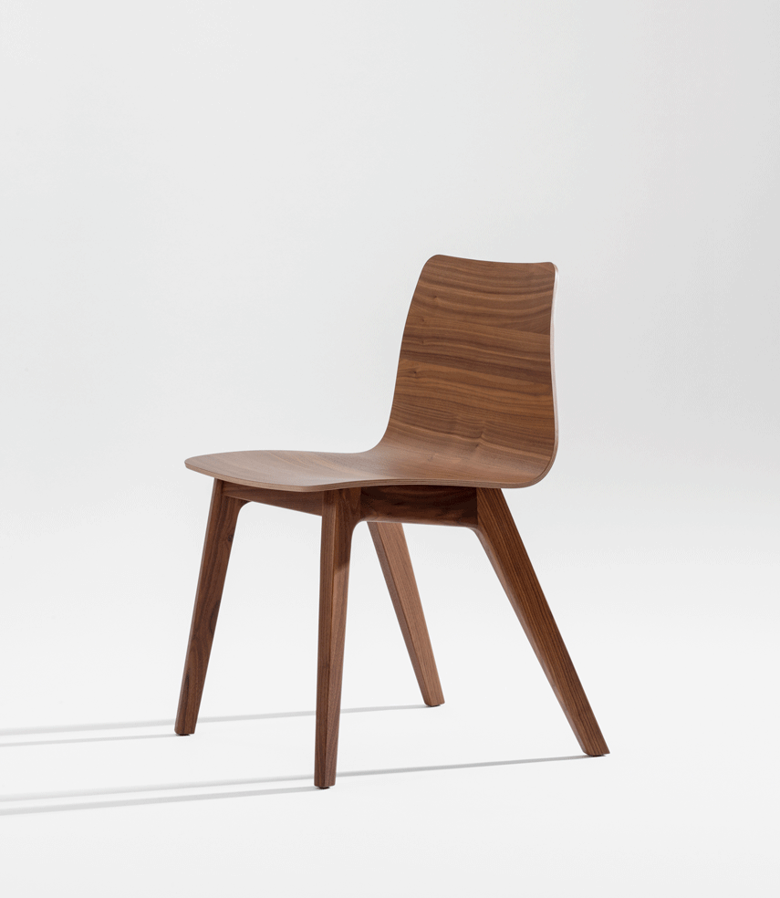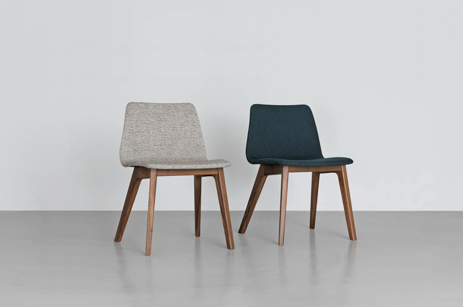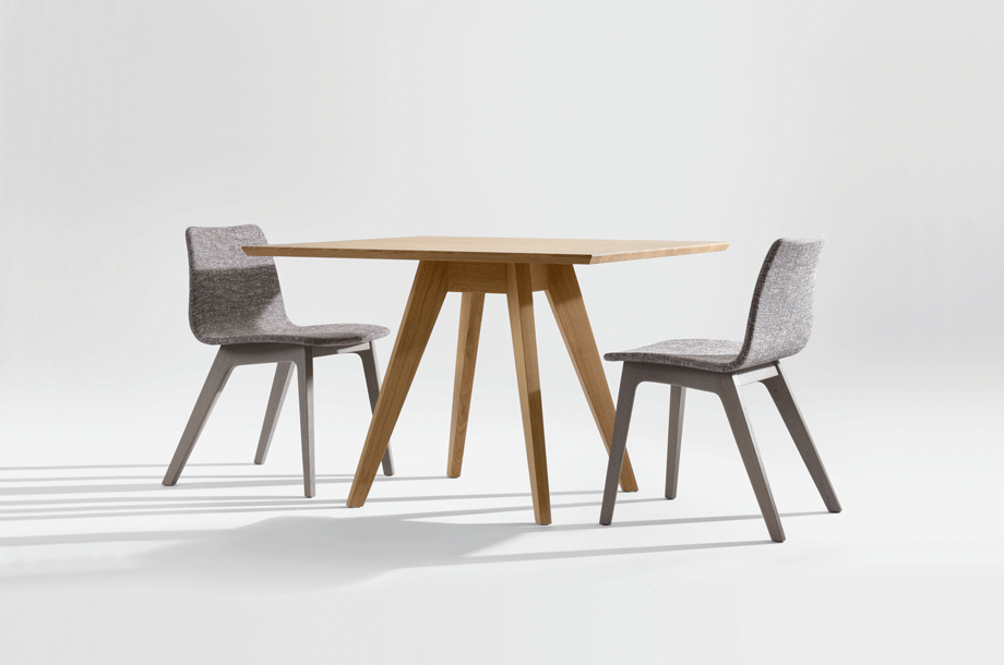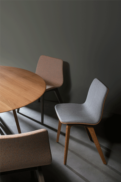 MORPH PLUS – the MORPH family has been extended to include a new chair. MORPH PLUS is characterised by a broader and deeper seat. The positioning of the legs gives the chair MORPH PLUS a unique posture, as if it had a support and a free leg. The sculpturally formed sub-frame conveys the interplay between stability and dynamism. The solid wood frame carries a light molded plywood shell, optionally with padded seat, or a fully upholstered shell.