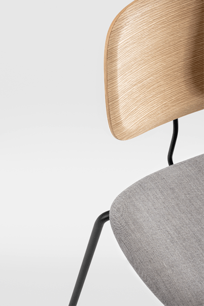 At the conference table, the OKITO PLY DINING offers the necessary comfort thanks to the ergonomic molded wood seat. The backrest absorbs the movement of the body and swings with it. At the dining table, too, the chair is formal, subtly designed and solidly built.