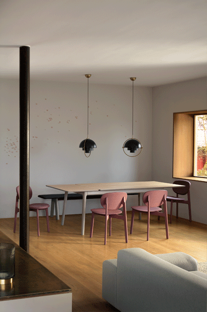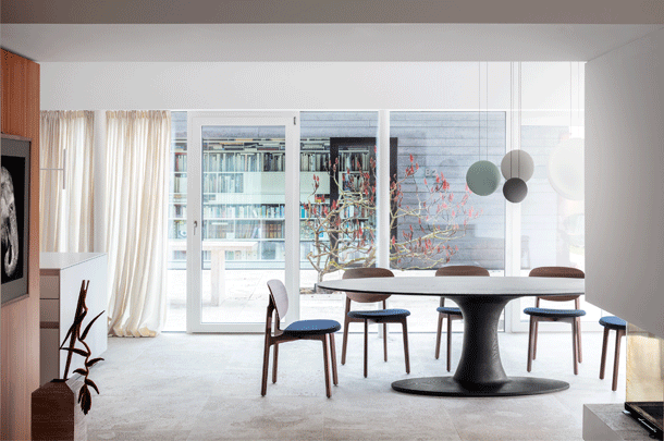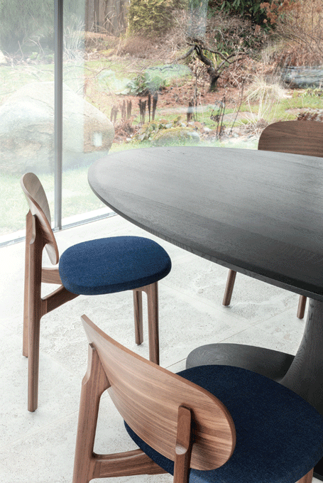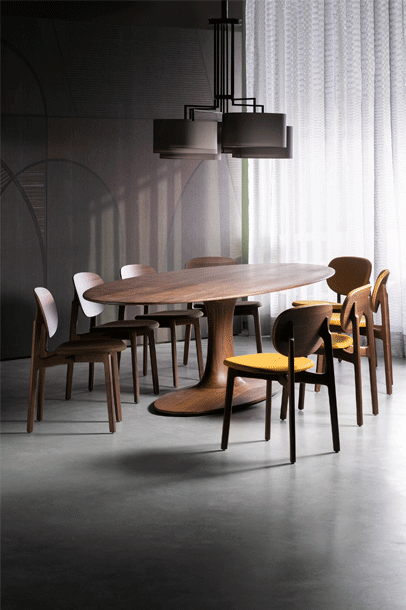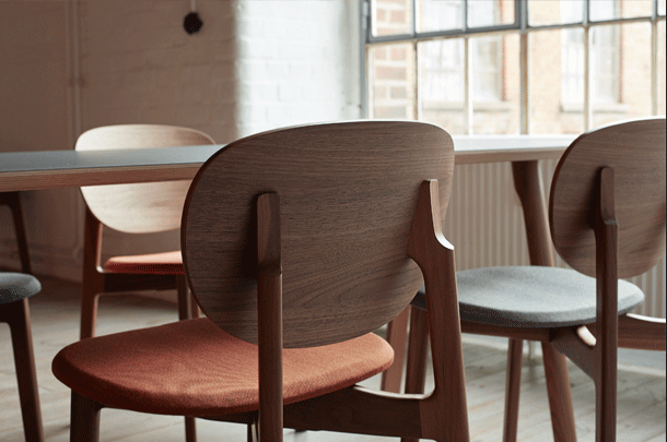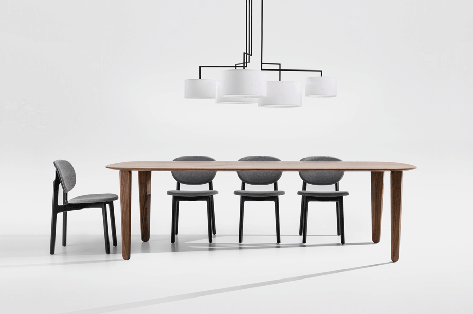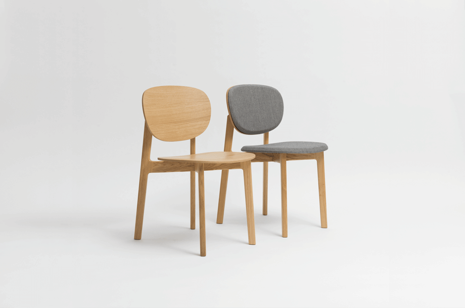 The expressive wooden frame incorporates two floating circles, the seat and the back of the chair. The frame consists of solid wood, the seat and back shell are made of moulded wood and can be upholstered. The seat upholstery is always fully upholstered, the back shell with and attached cushion. ZENSO is available with either a wooden seat and back shell, with an upholstered seat and back shell or with an upholstered seat and wooden back shell.