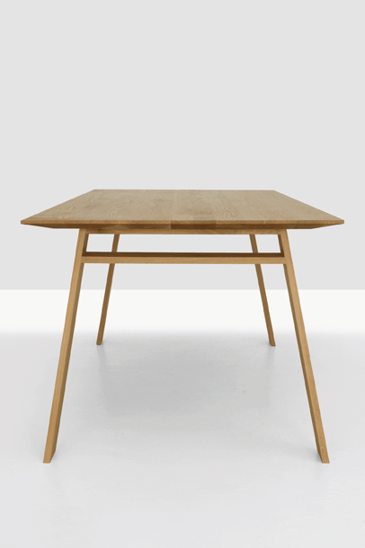 The BONDT family of tables has the seemingly thin table top balanced on two trestles in an exciting contrast with broad planks. BONDT is available rectangular, round and square. The program is complemented by the side tables BONDT S, M and L.