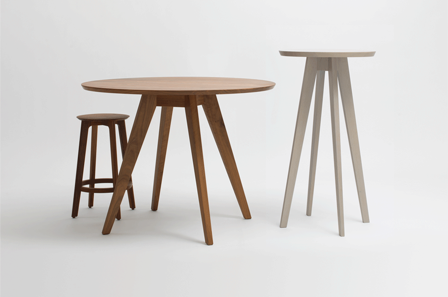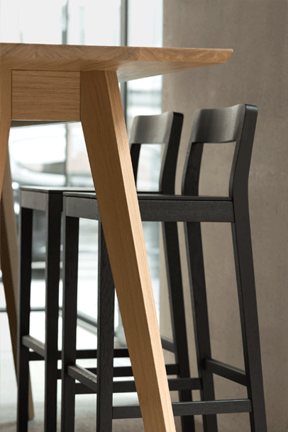 The high table CENA HIGH shows great strength of character. The bevelled table top gives it a lightness and dynamic contrasting nicely with the reassuringly solid trestle. CENA HIGH table tops are available in rectangular, square and round, in hight 110 cm. With regard to special dimensions.