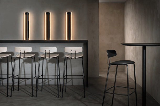 VERMU HIGH is characterised by its stable pillar frame. The reduced, square base plate with its rounded corners can be combined with both table top shapes – round and square. The slender central pillar ensures maximum legroom, the solid iron footplate ensures stablility. The satin-matt powder-coated surface also ensures high durability in contract use. With its profiled edge, the solid wood tabletop has a light and elegant appearance. Due to the reduced design language, the VERMU HIGH tables can be easily combined with all ZEITRAUM chairs.