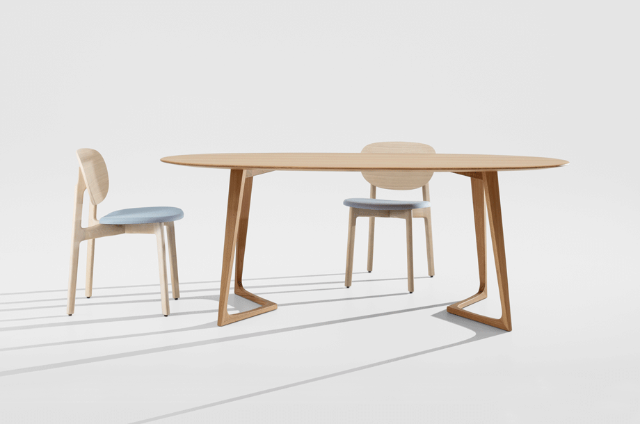 TWIST – the biomorphous structure of the lightweight frame combines structural strength with flowing shapes, while underscoring the sophisticated edge profiling of the table top. TWIST is available in round, oval and rectangular. The product-family consists of the dining table TWIST, the couch tables TWIST COUCH and TWIST STONE and the bed table TWIST NIGHT.