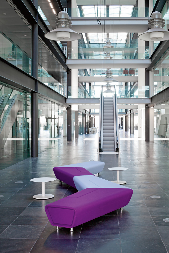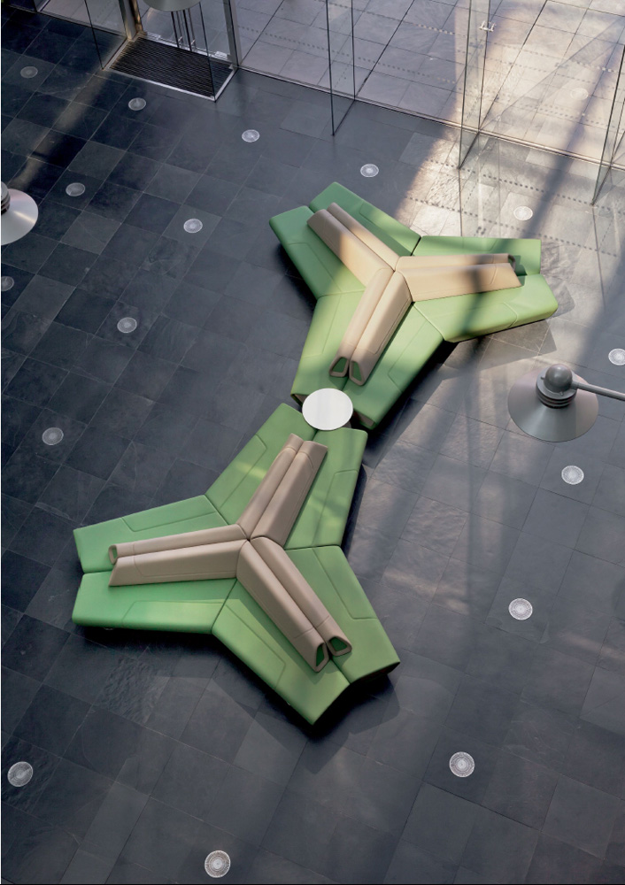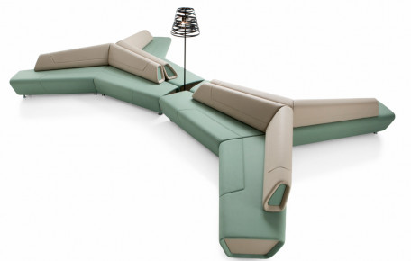 Modular range for waiting, conversation and meeting areas made of various interchangeable units for corner or linear solutions in one-color or bi-color upholstery