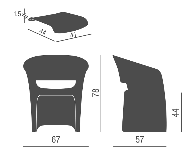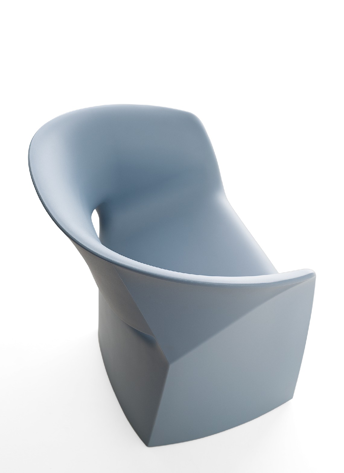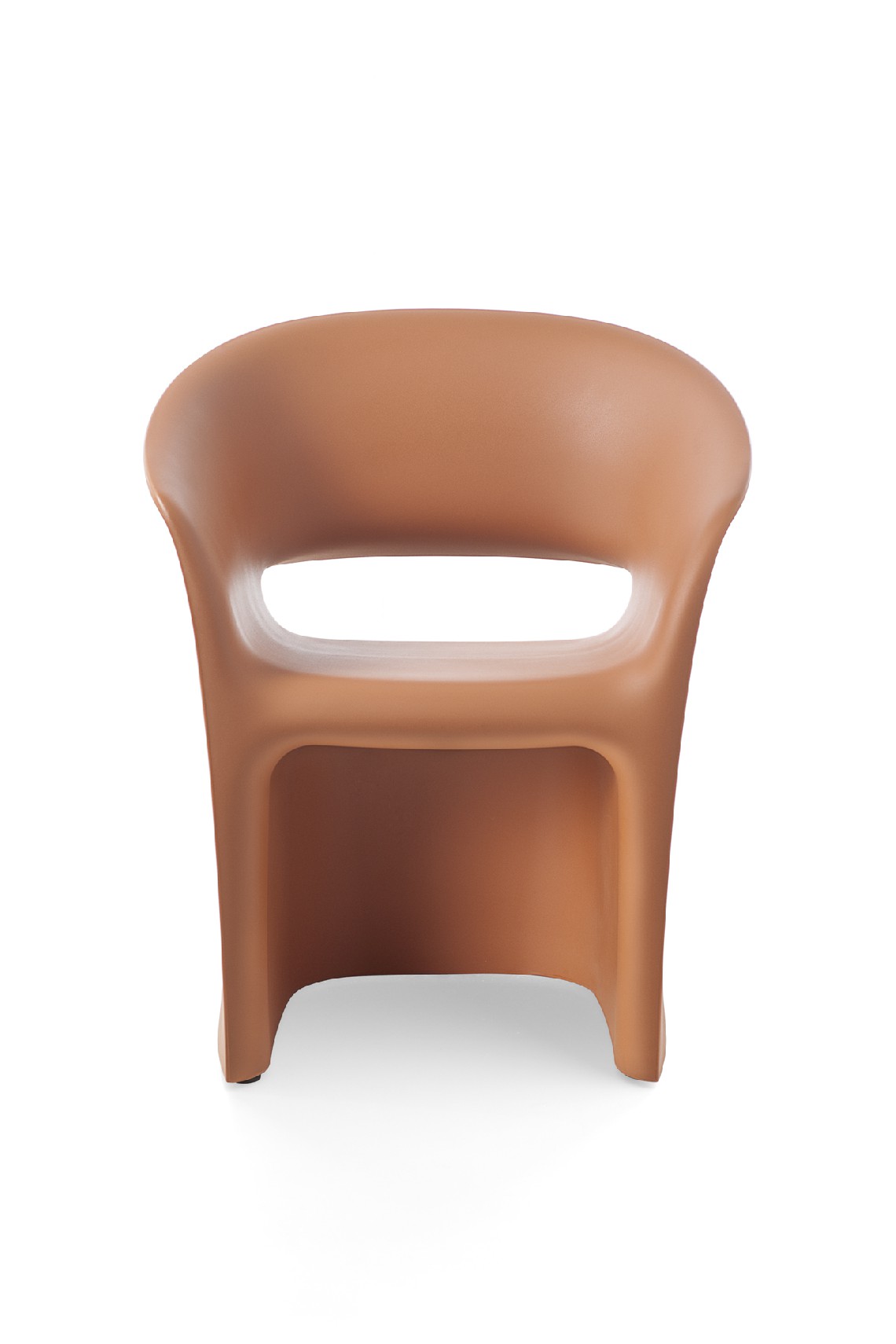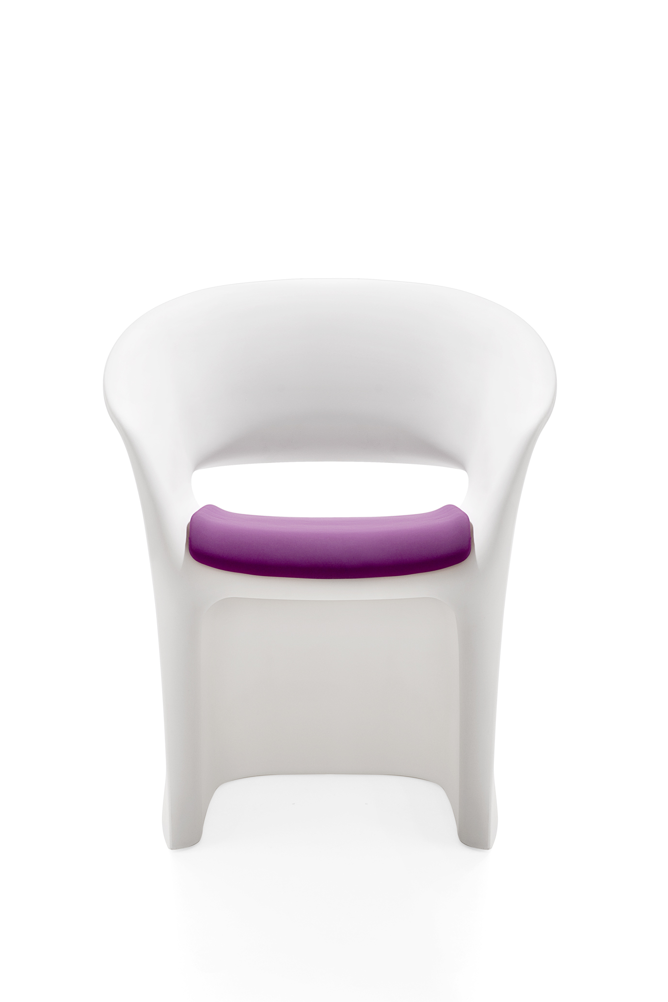 Tub chair in non-porous polyethylene, both for indoor and outdoor use, obtained by rotational molding process, in the colors white-light blue-terracotta-mustard-burgundy- lava.