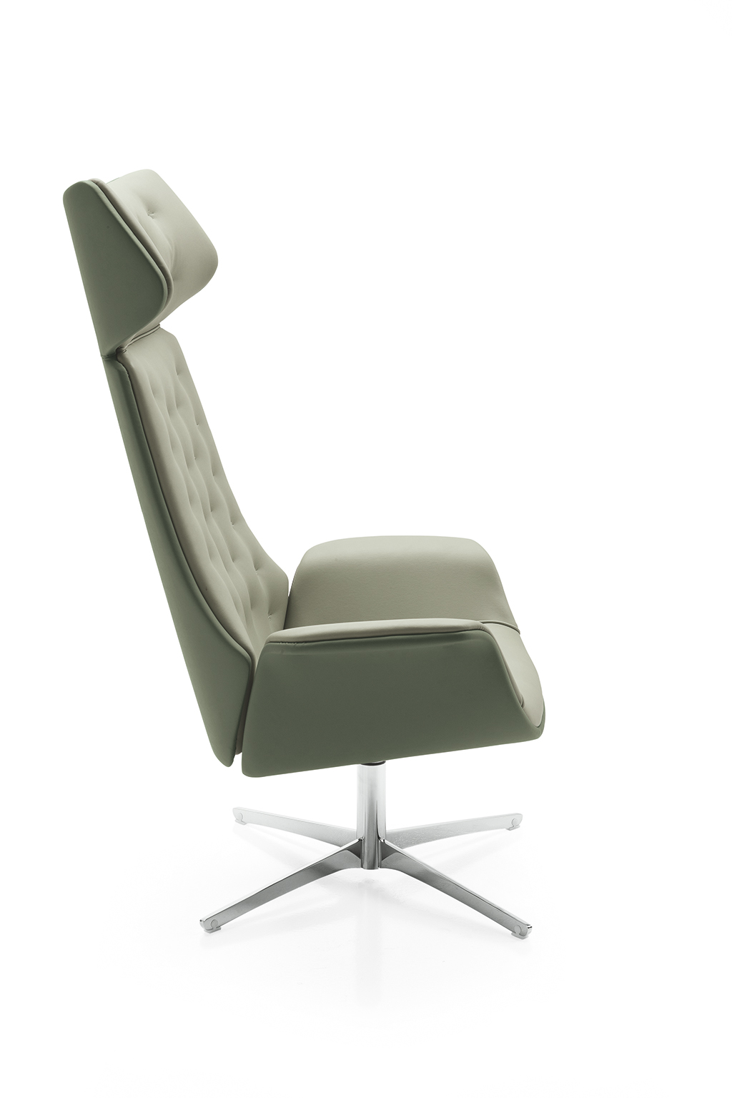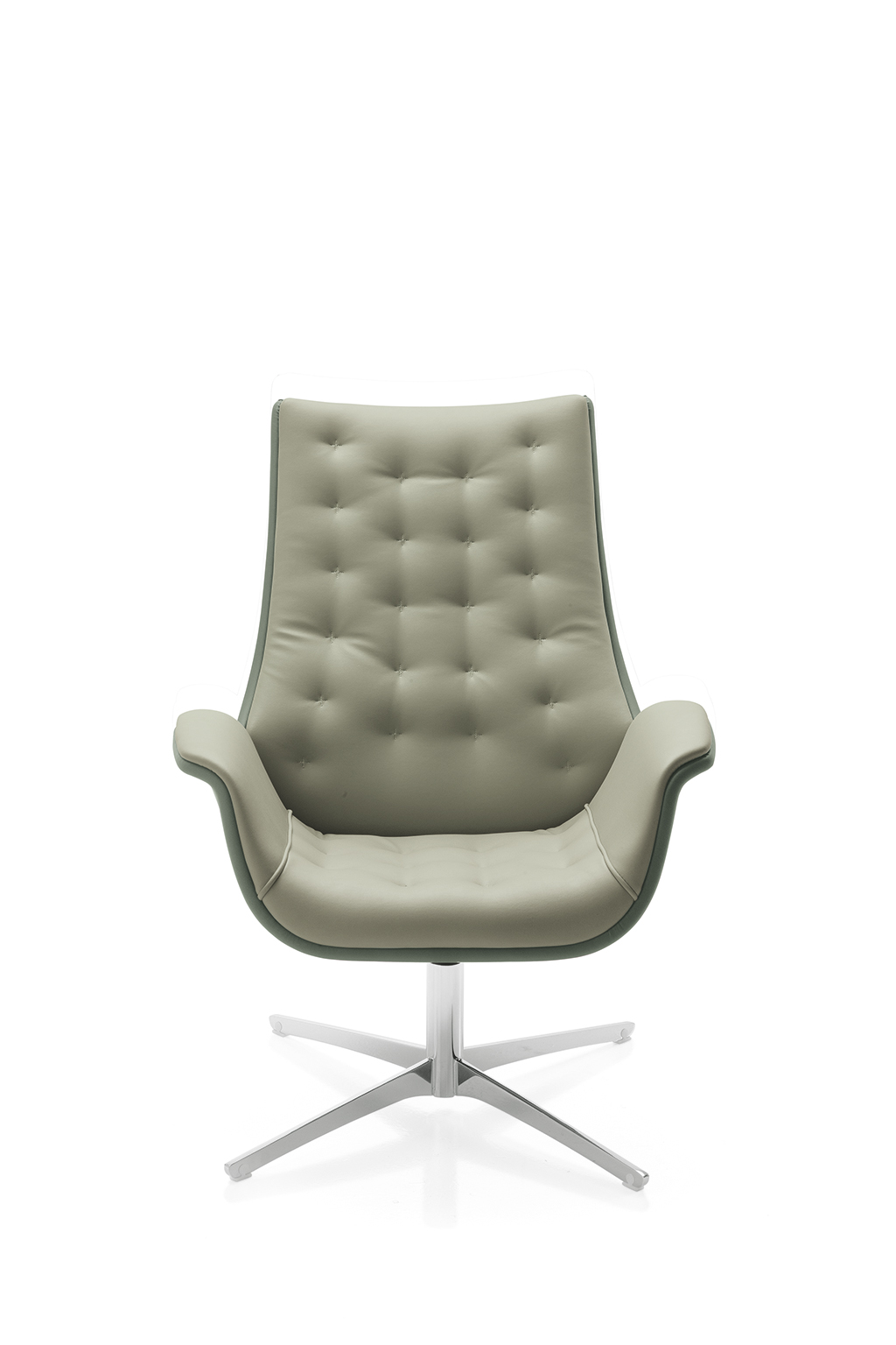 Armchair for relaxing, waiting and reception areas, with different options of either fixed or swivel bases.