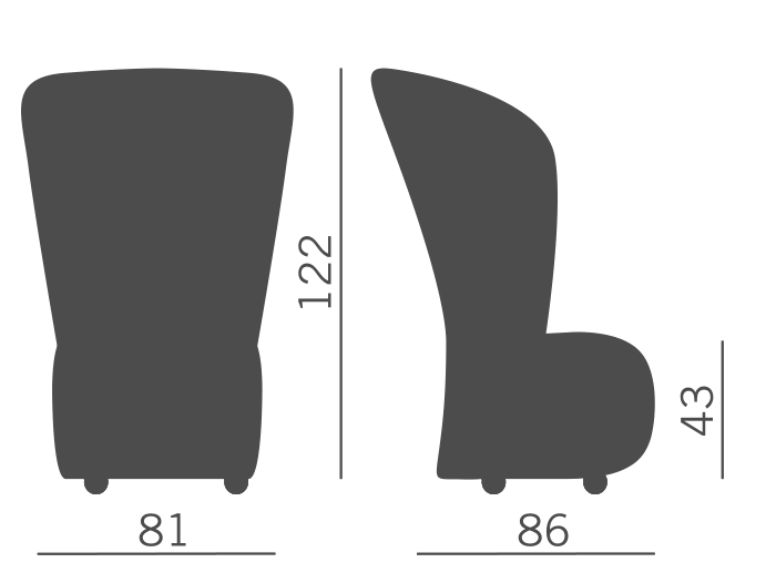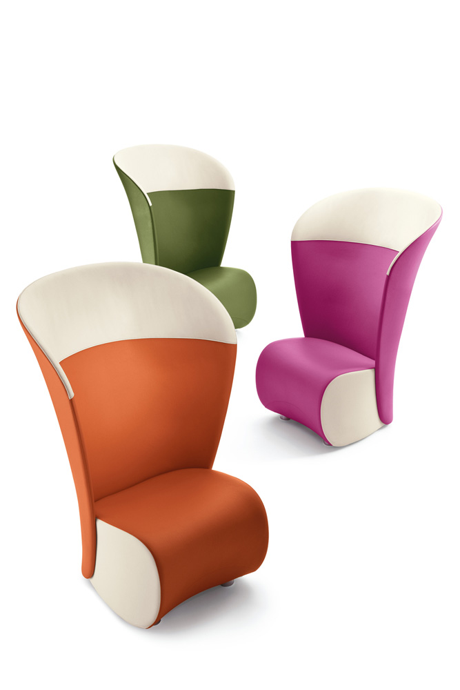 Armchair with high back for waiting, relaxing and conversation areas, available in one-colour or two-colours versions, with feet.