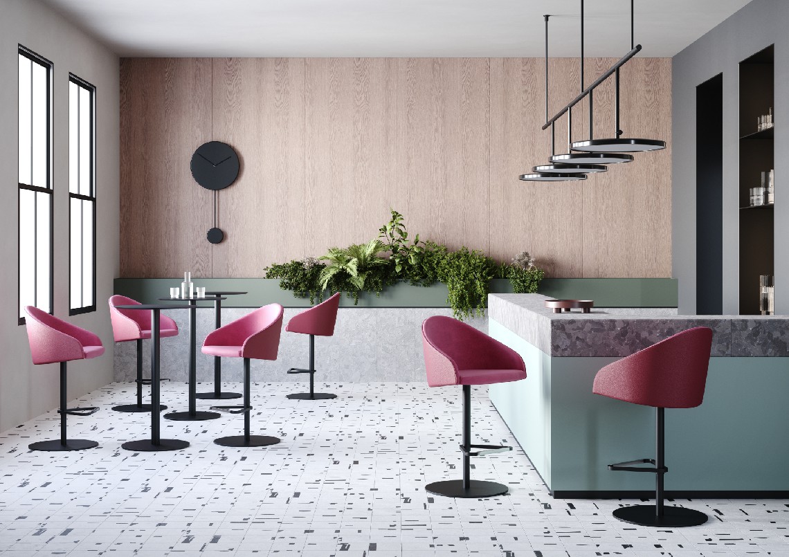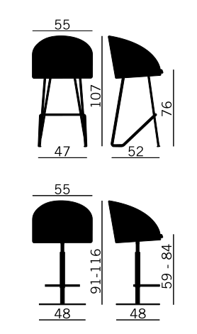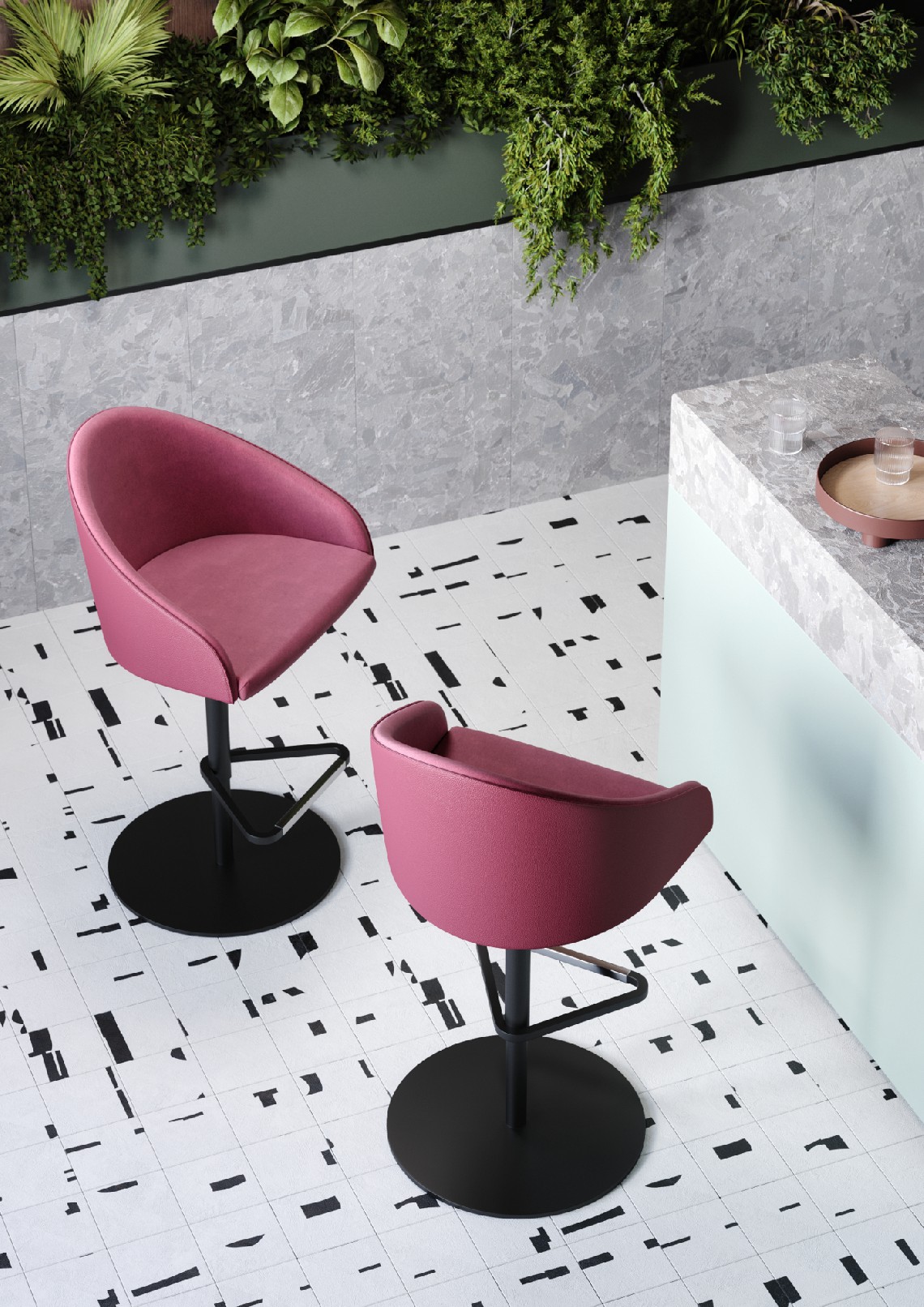 Stool with seat and back upholstered, one colour or two colours, available in the following versions: