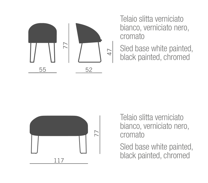 - with chromed, white, black, sled base